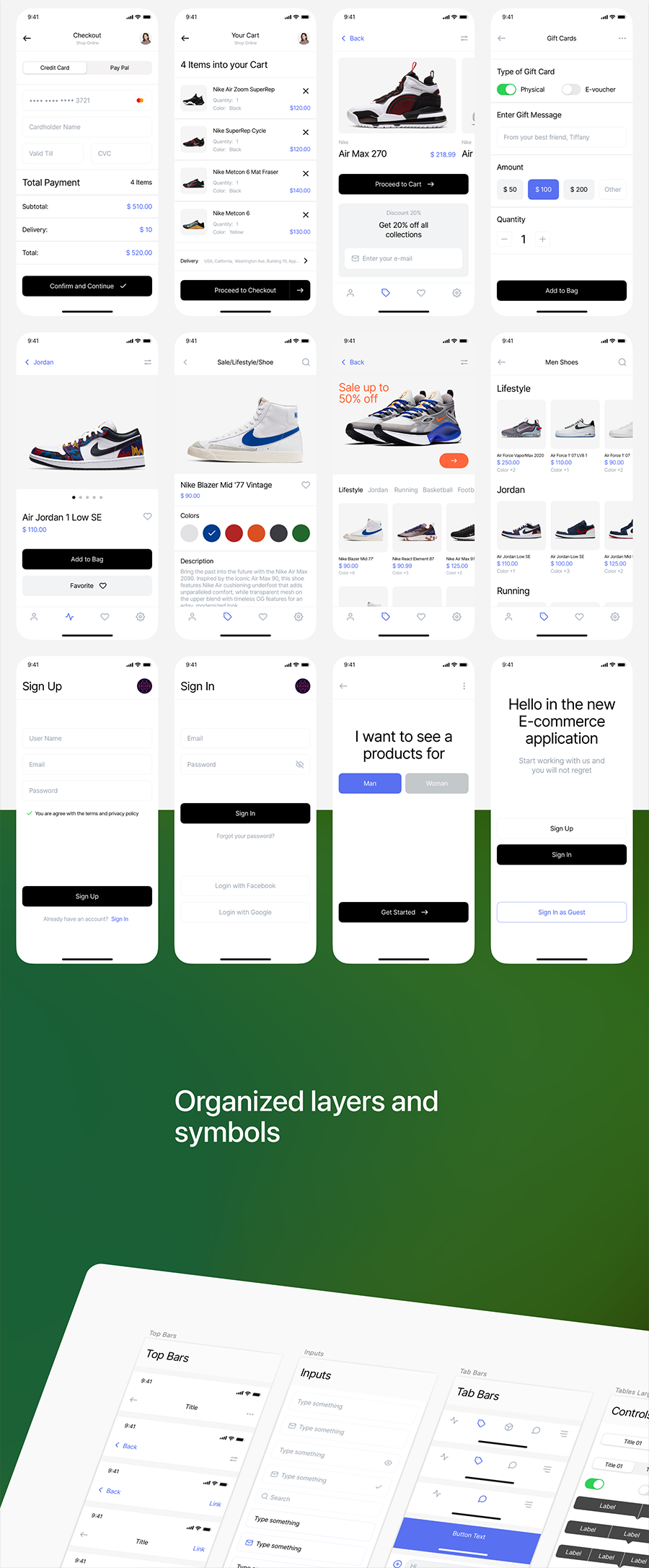 鞋子服装电商尺码颜色详情购物车等app ui源文件 sketch模板 声明:本站所有资源版权均属于原作者所有,这里所提供资源均只能用于参考学习用,请勿直接商用。若由于商用引起版权纠纷,一切责任均由使用者承担。更多说明请参考 VIP介绍。