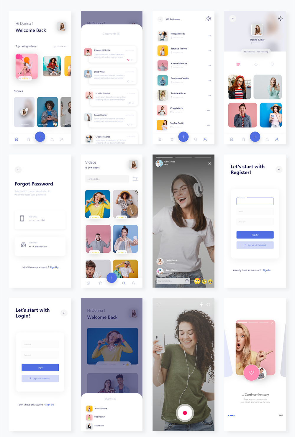 视频录制分享社交列表评论登录等app ui源文件sketch xd模板 声明:本站所有资源版权均属于原作者所有,这里所提供资源均只能用于参考学习用,请勿直接商用。若由于商用引起版权纠纷,一切责任均由使用者承担。更多说明请参考 VIP介绍。