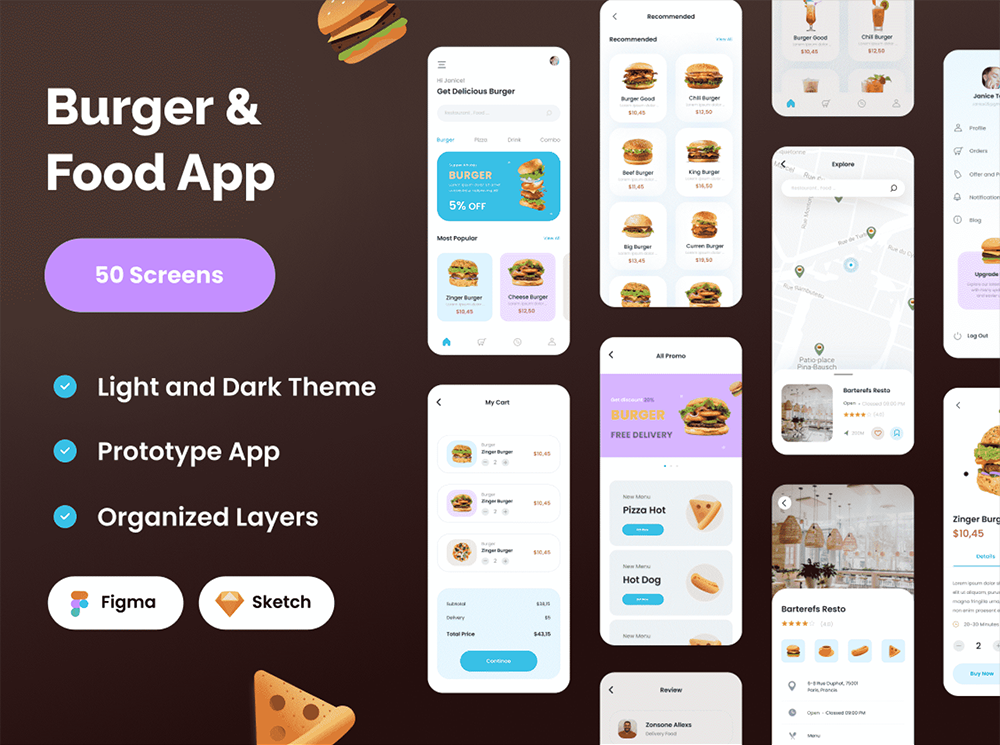 食品汉堡外卖分类详情订单追踪app ui源文件 sketch fig模板 声明:本站所有资源版权均属于原作者所有,这里所提供资源均只能用于参考学习用,请勿直接商用。若由于商用引起版权纠纷,一切责任均由使用者承担。更多说明请参考 VIP介绍。
