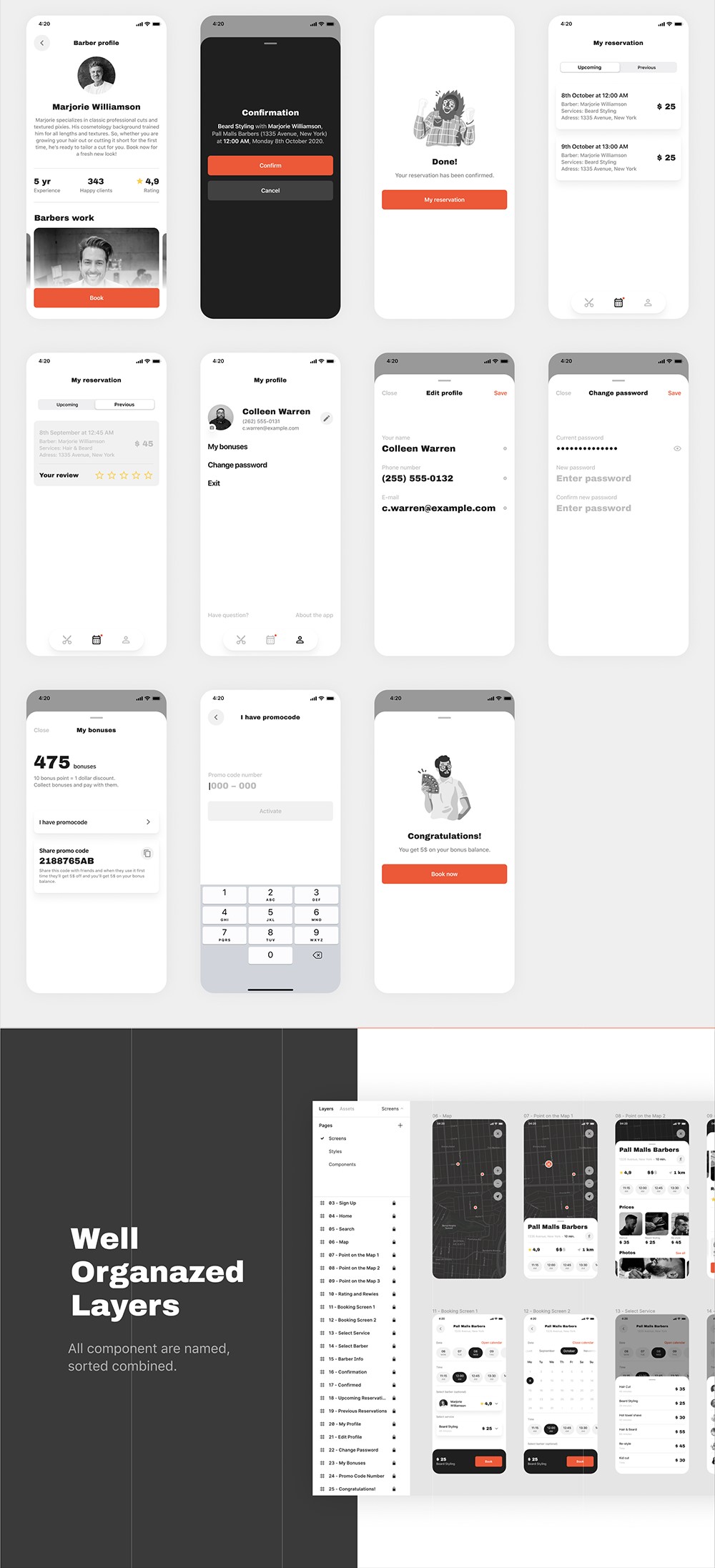 美容理发护理在线预订详情评论个人中心app ui源文件fig模板 声明:本站所有资源版权均属于原作者所有,这里所提供资源均只能用于参考学习用,请勿直接商用。若由于商用引起版权纠纷,一切责任均由使用者承担。更多说明请参考 VIP介绍。