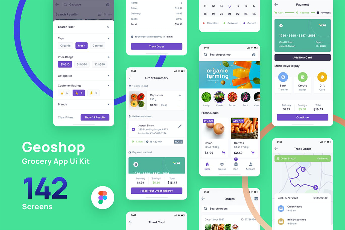 杂货店电商列表详情创建账户订单购物车app ui源文件fig模板