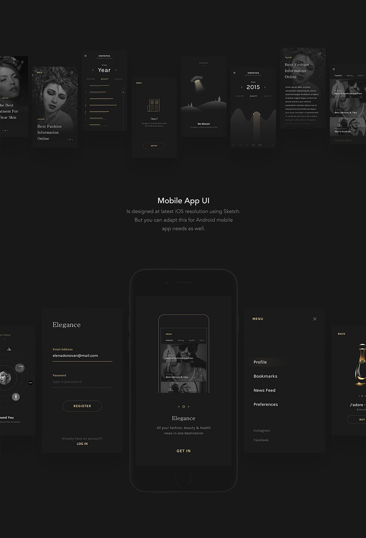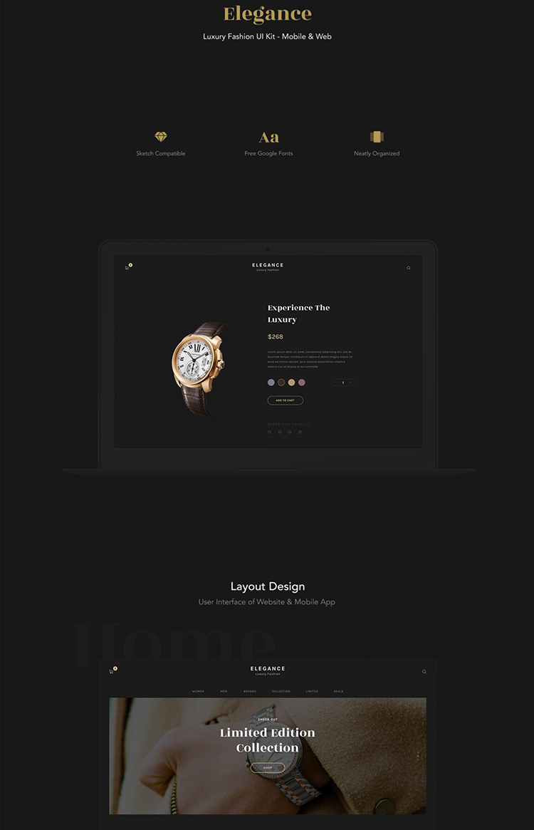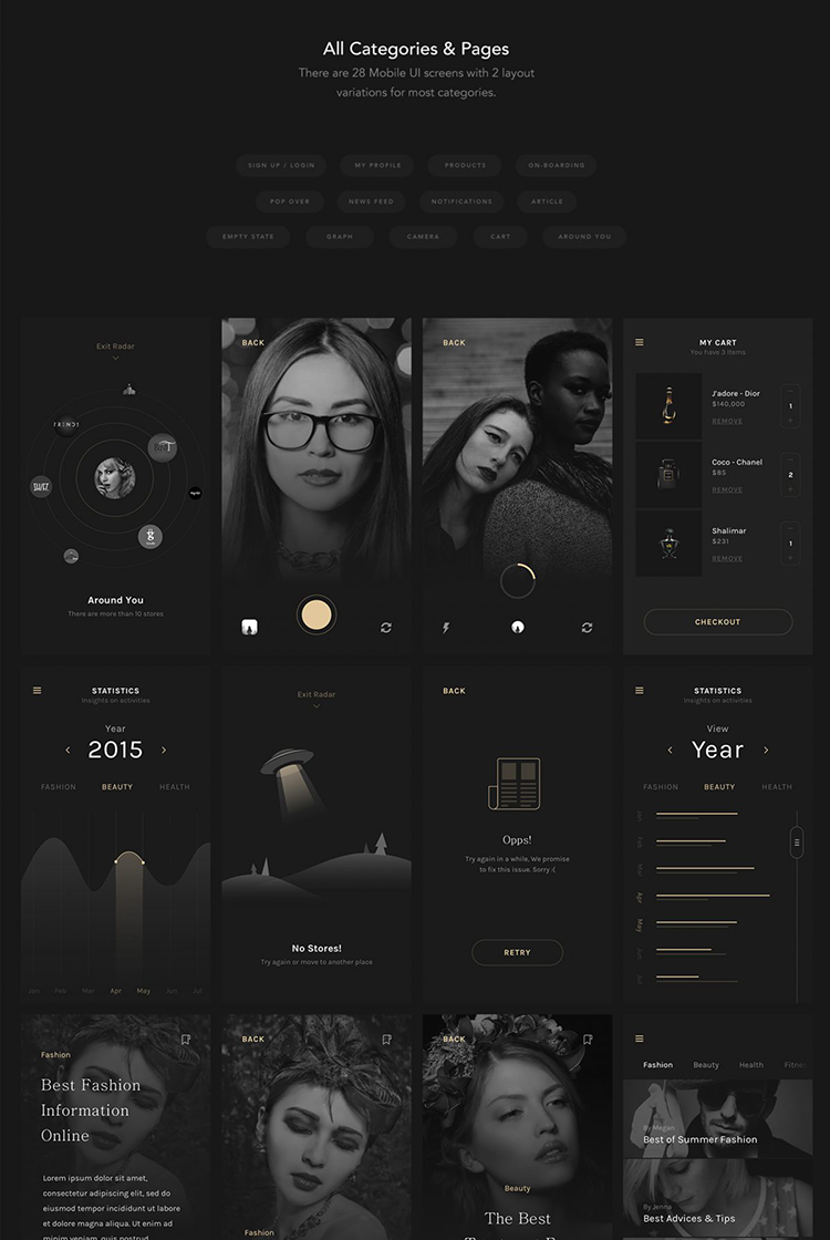 黑色黄色主色奢侈品电子商务优雅时尚高端大气APP&WEB UI KITS