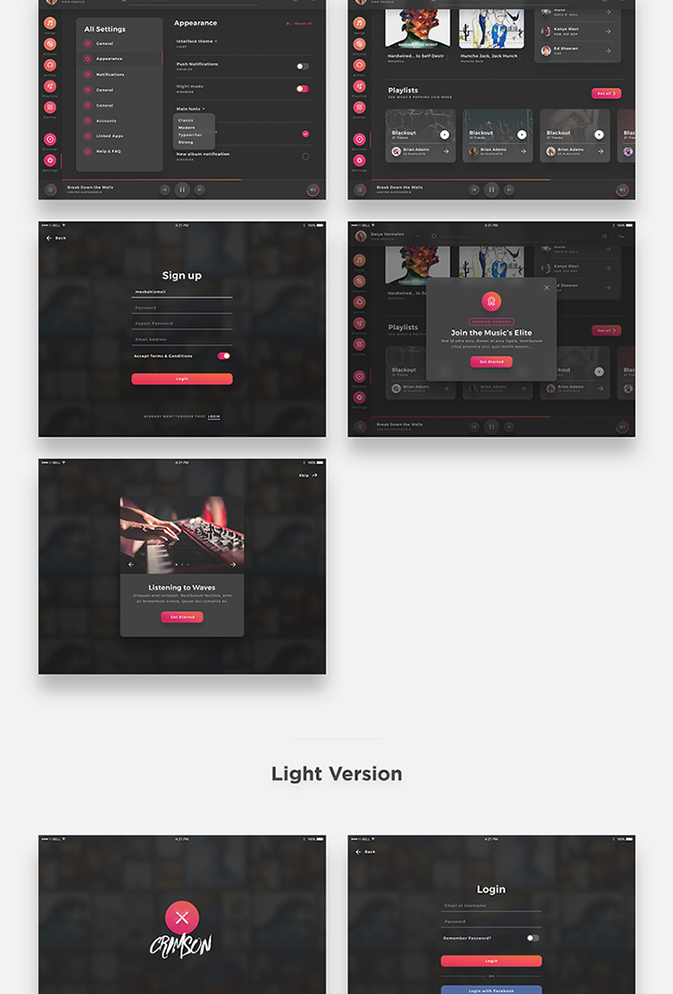 精致质感音乐娱乐类Web Ui播放器psd sketch源文件设计模板 声明:本站所有资源版权均属于原作者所有,这里所提供资源均只能用于参考学习用,请勿直接商用。若由于商用引起版权纠纷,一切责任均由使用者承担。更多说明请参考 VIP介绍。