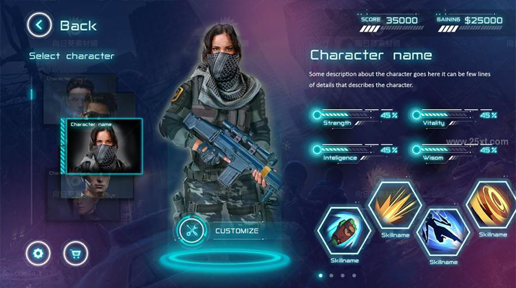 高科技感游戏web ui界面模板MMORPG角色扮演类psd设计源文件 声明:本站所有资源版权均属于原作者所有,这里所提供资源均只能用于参考学习用,请勿直接商用。若由于商用引起版权纠纷,一切责任均由使用者承担。更多说明请参考 VIP介绍。
