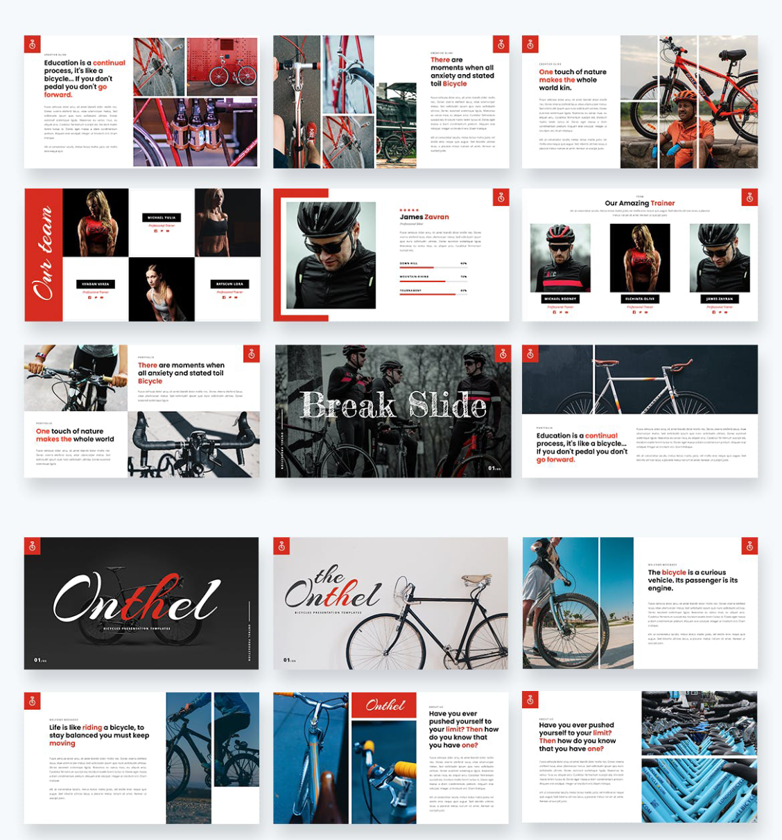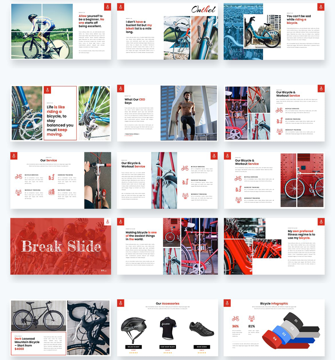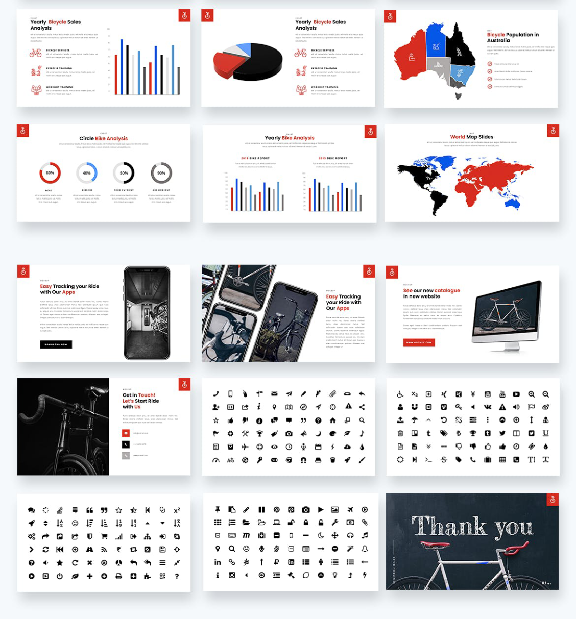 公司企业自行车旅行健身运动项目介绍等PowerPoint幻灯片模板 声明:本站所有资源版权均属于原作者所有,这里所提供资源均只能用于参考学习用,请勿直接商用。若由于商用引起版权纠纷,一切责任均由使用者承担。更多说明请参考 VIP介绍。