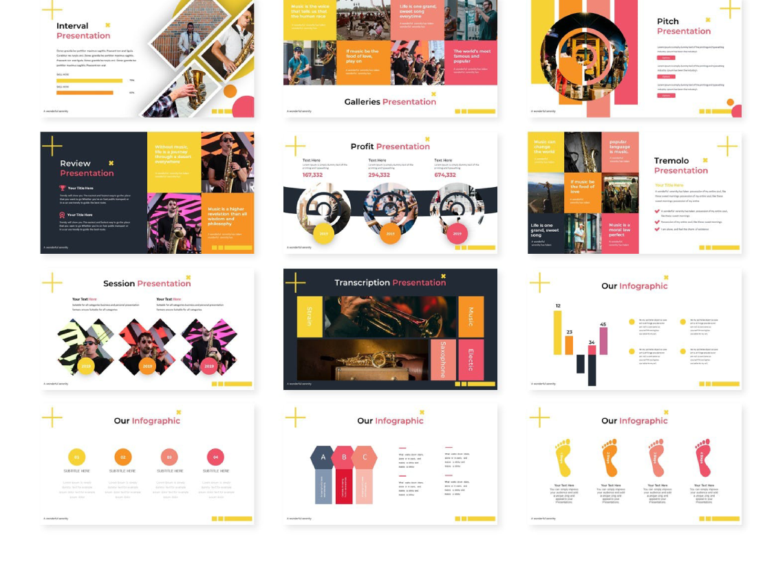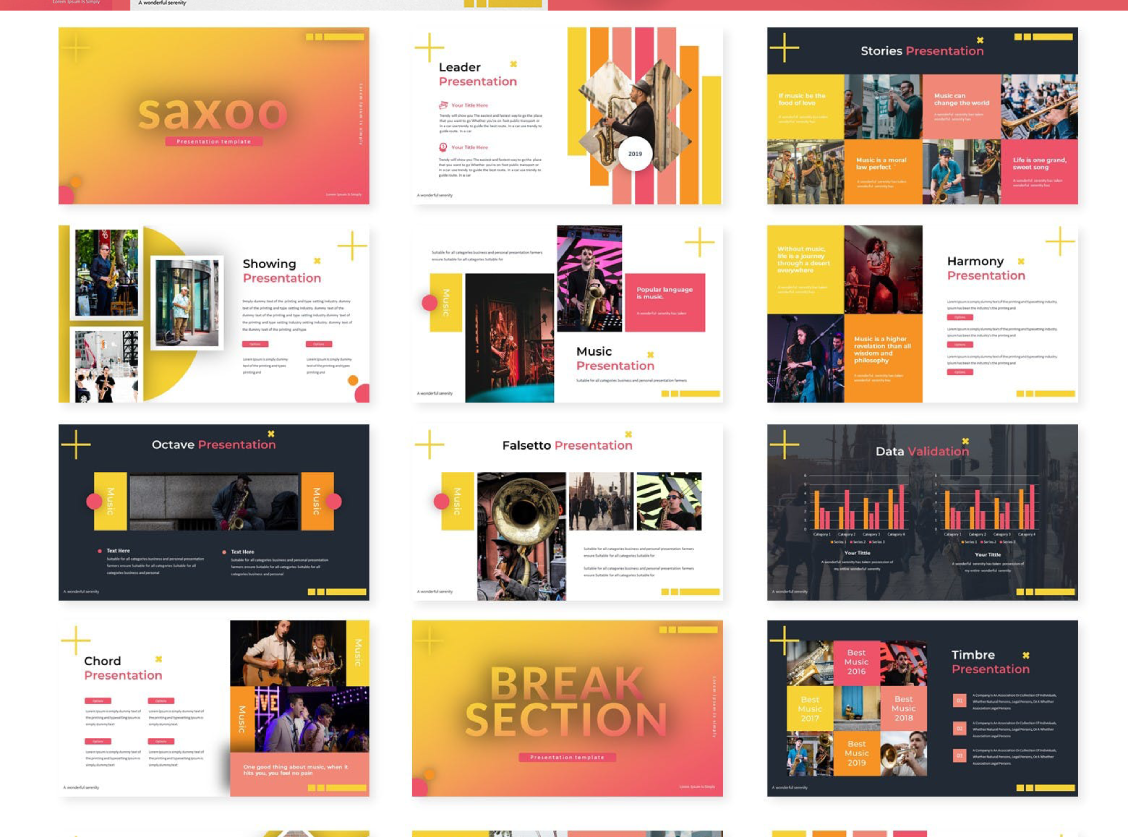 多种配色乐队音乐表演活动策划娱乐PowerPoint幻灯片演示模板 声明:本站所有资源版权均属于原作者所有,这里所提供资源均只能用于参考学习用,请勿直接商用。若由于商用引起版权纠纷,一切责任均由使用者承担。更多说明请参考 VIP介绍。