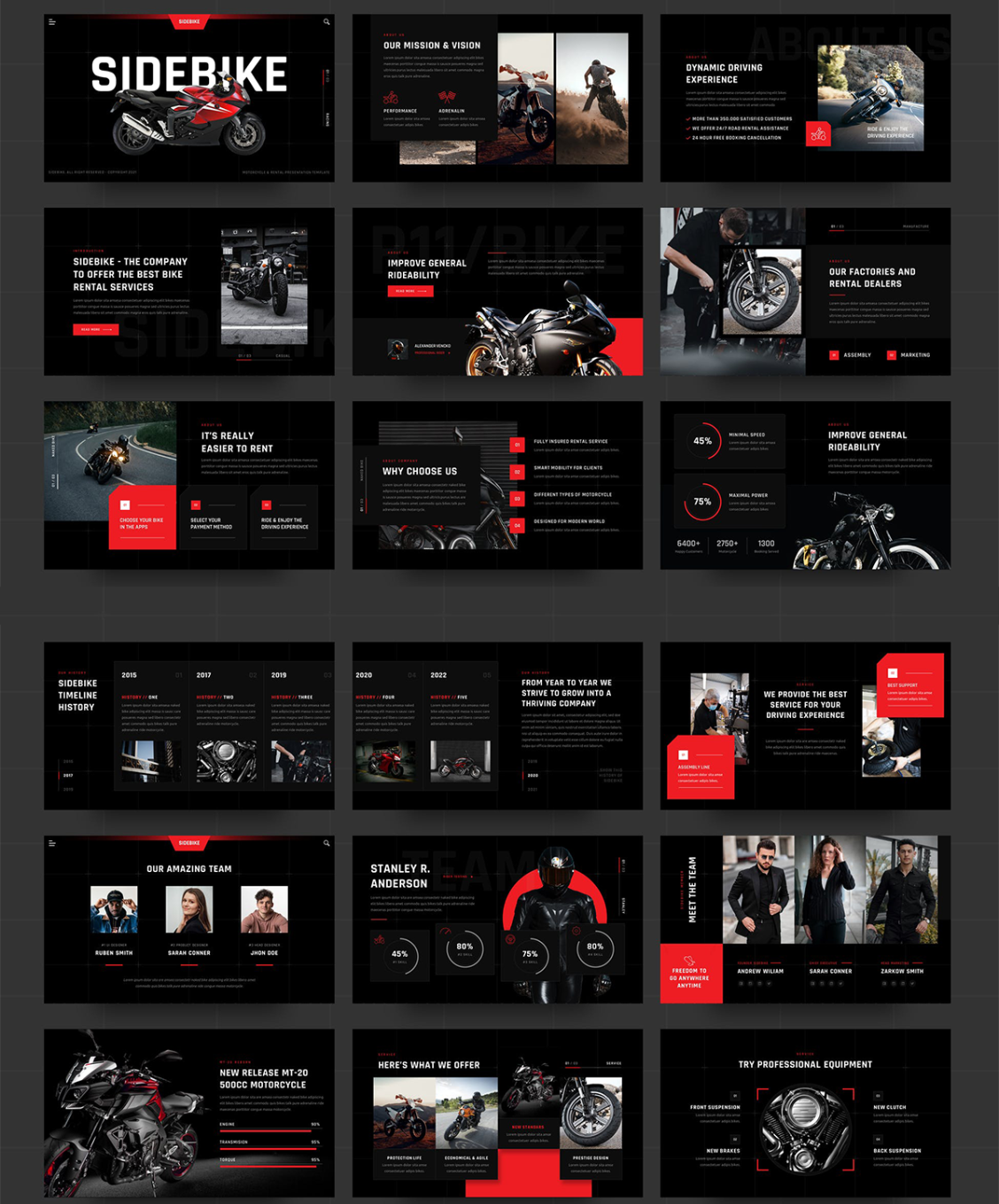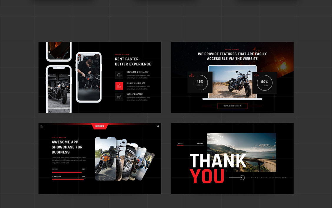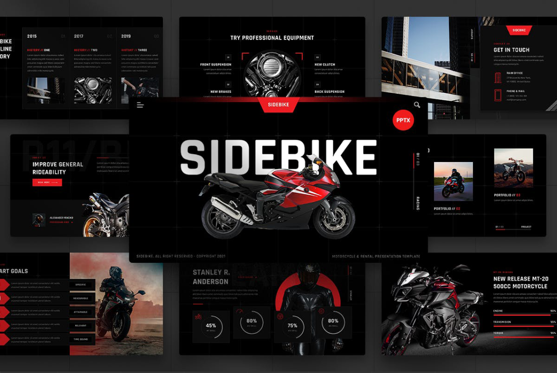 摩托车租赁服务幻灯片企业品牌推广介绍等PowerPoint演示模板 声明:本站所有资源版权均属于原作者所有,这里所提供资源均只能用于参考学习用,请勿直接商用。若由于商用引起版权纠纷,一切责任均由使用者承担。更多说明请参考 VIP介绍。