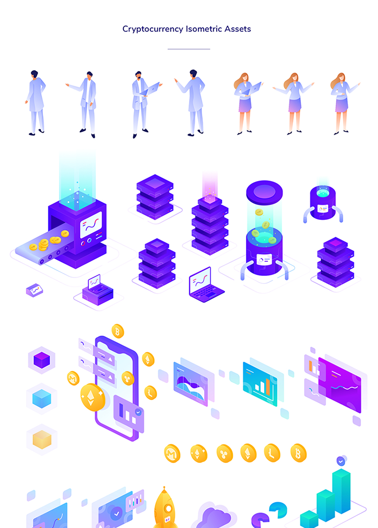 等距2.5D加密货币区块链等 ai sketch xd插画矢量图形素材包