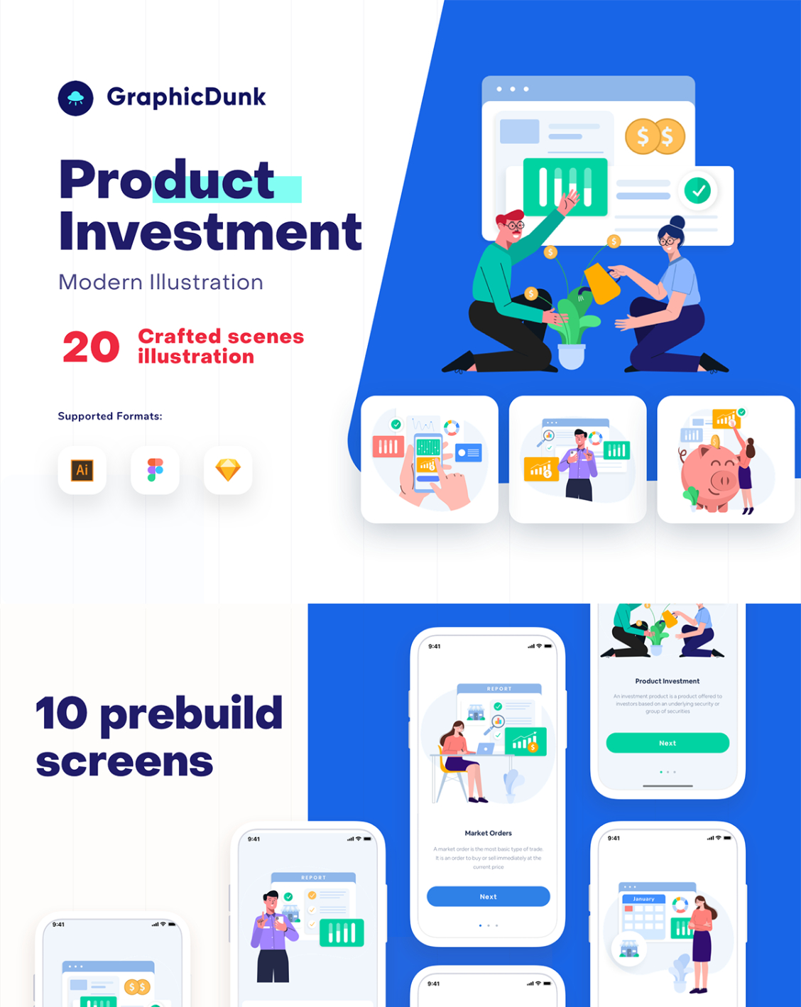 投资理财市场分析虚拟交易ai sketch场景插画矢量图形素材包