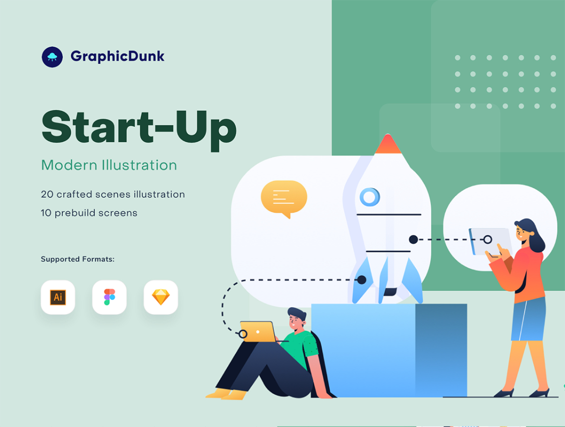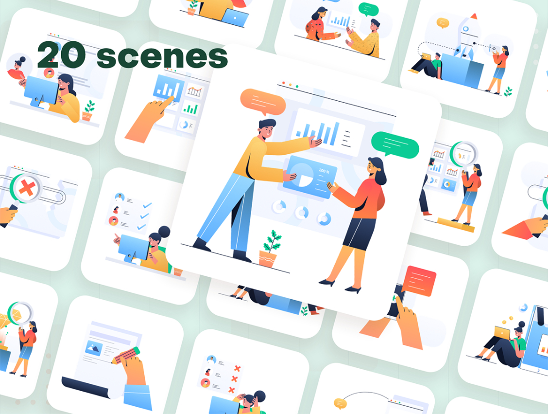 数据分析社交科技团队等 eps sketch场景插画矢量图形素材包