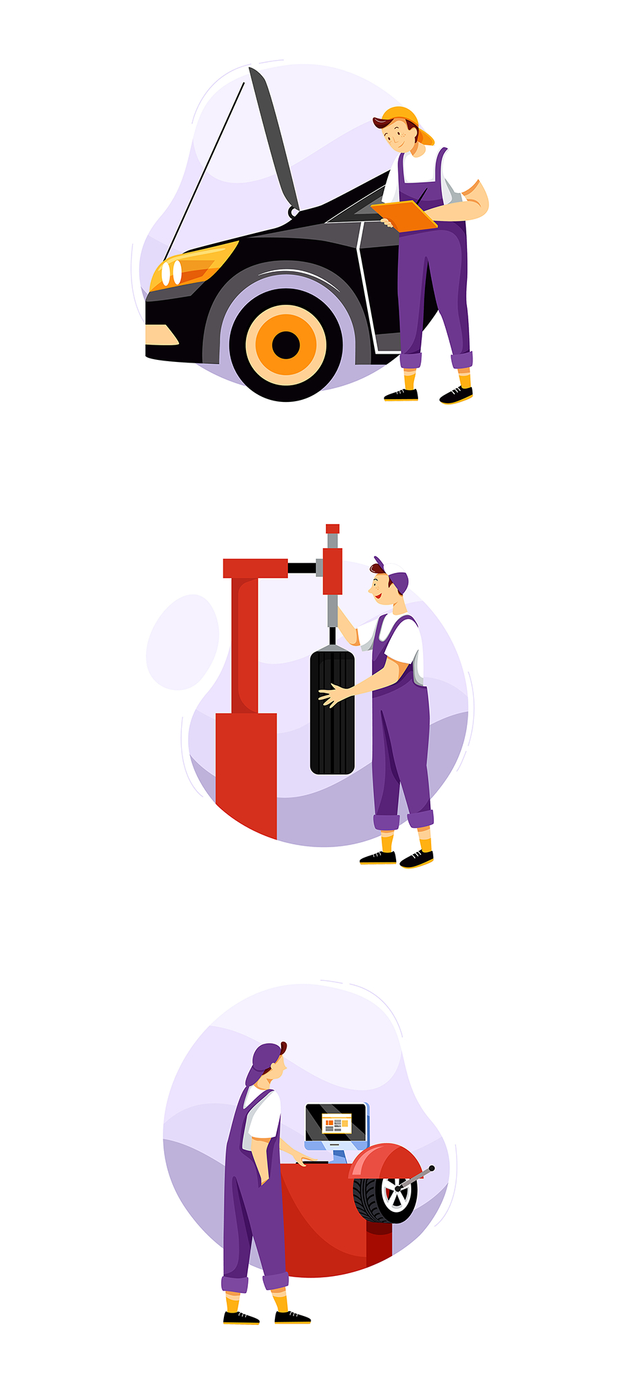 时尚可爱汽车维修洗车支付 ai sketch xd插画矢量图形素材包