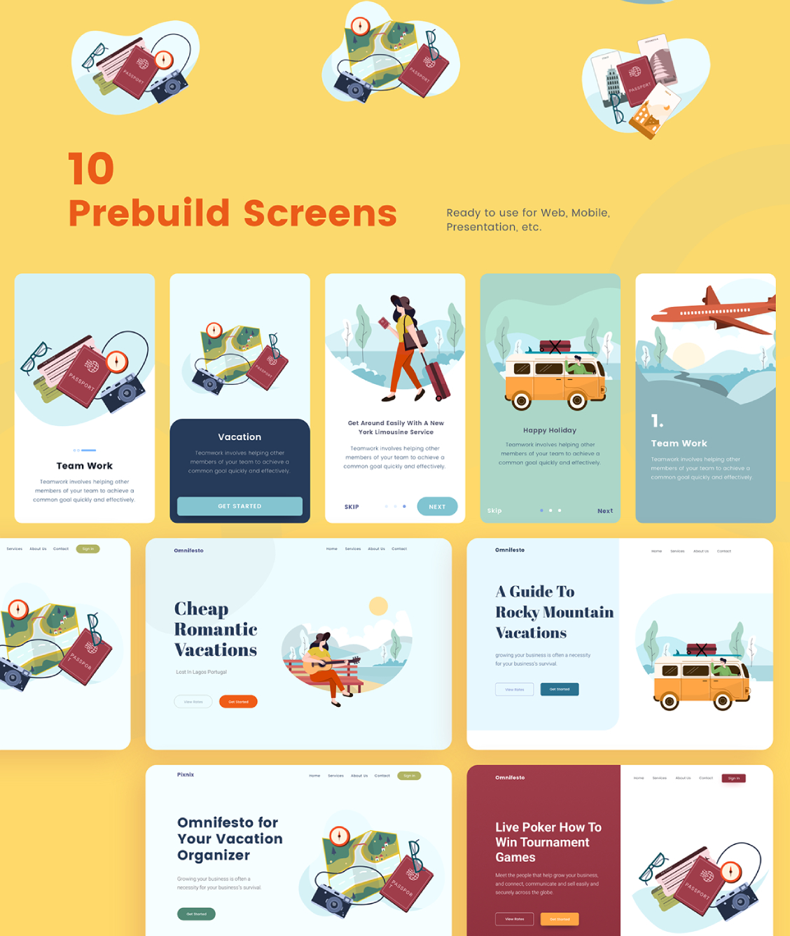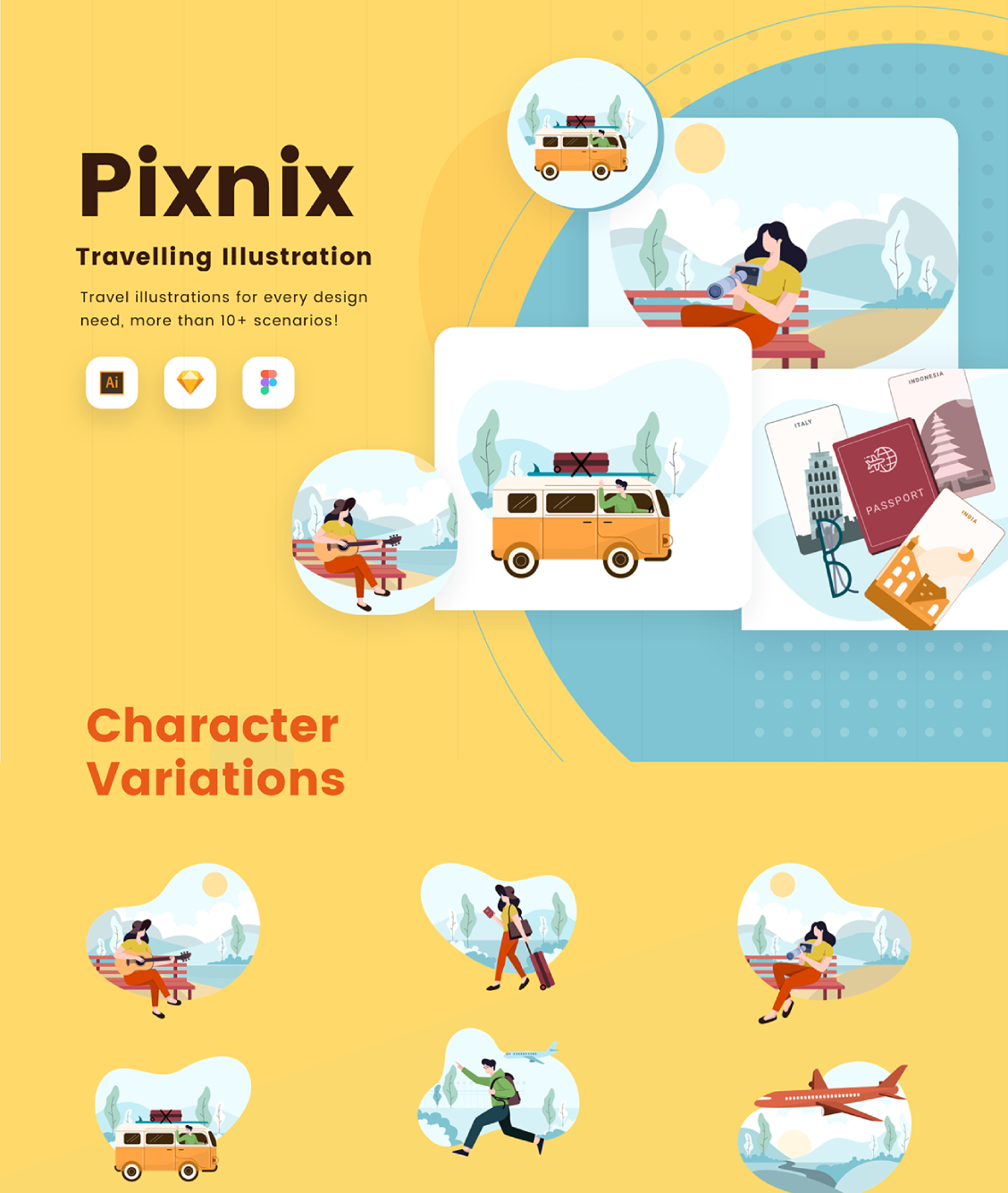 徒步坐飞机公交环球旅行/游等 ai sketch插画矢量图形素材包