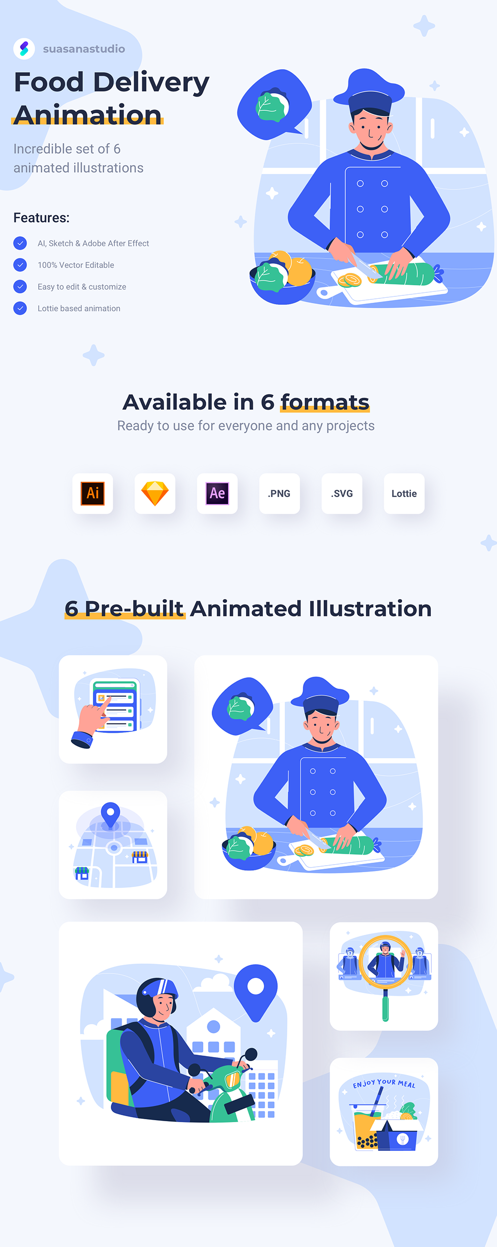 厨师送餐手机订餐 ai sketch aep html插画矢量图形动画模板
