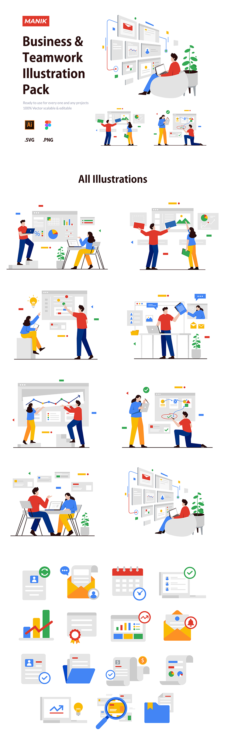 办公商务/业团队合作图表电脑邮件ai fig插画矢量图形素材包