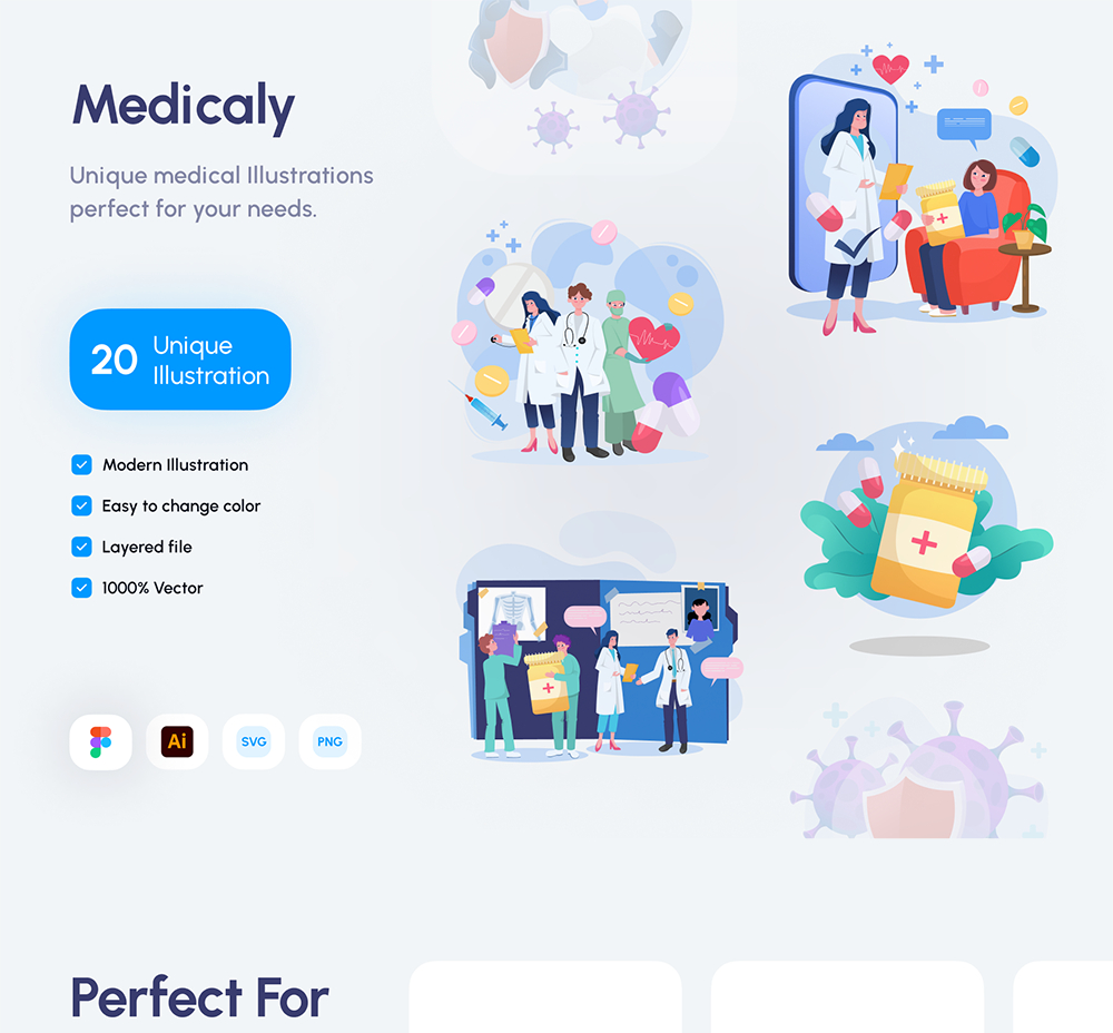 医疗/学插画视频问诊病毒防护药丸打针ai fig矢量图形素材包