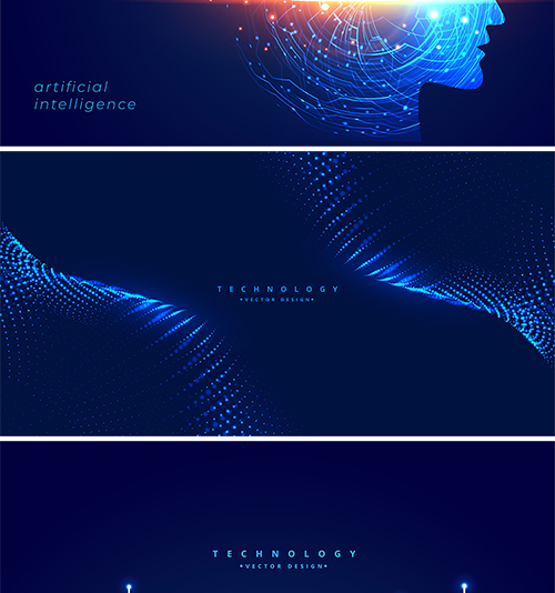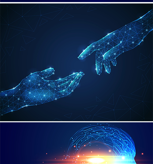 高科技大数据发光曲线粒子波人脸手等 ai eps矢量图形素材包