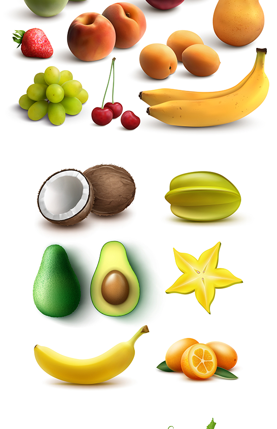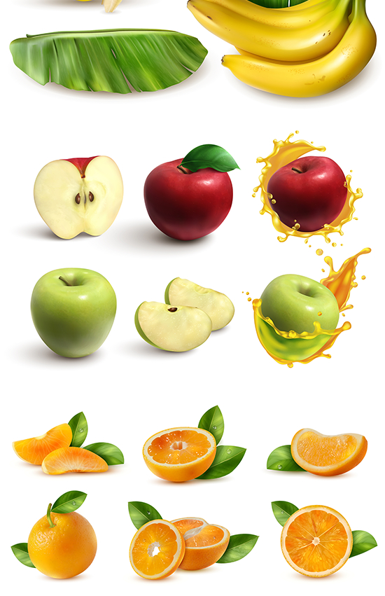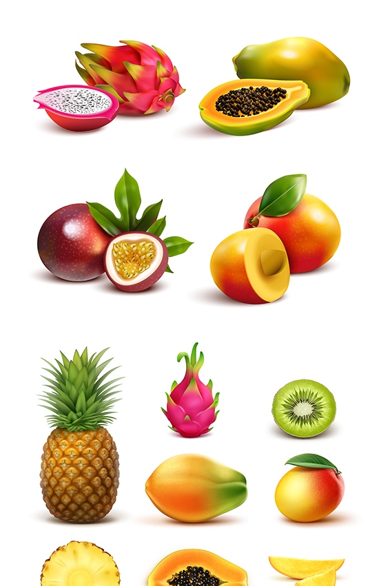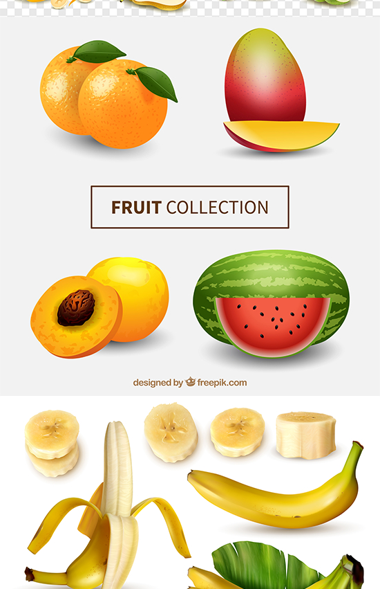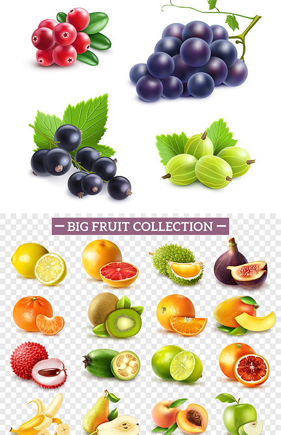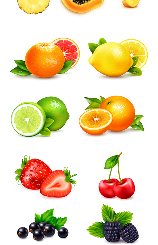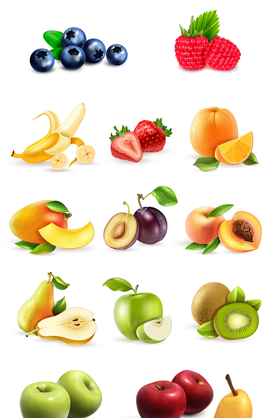 质感水果eps矢量图形元素橙子草莓黄桃梨橙子PS免抠设计素材