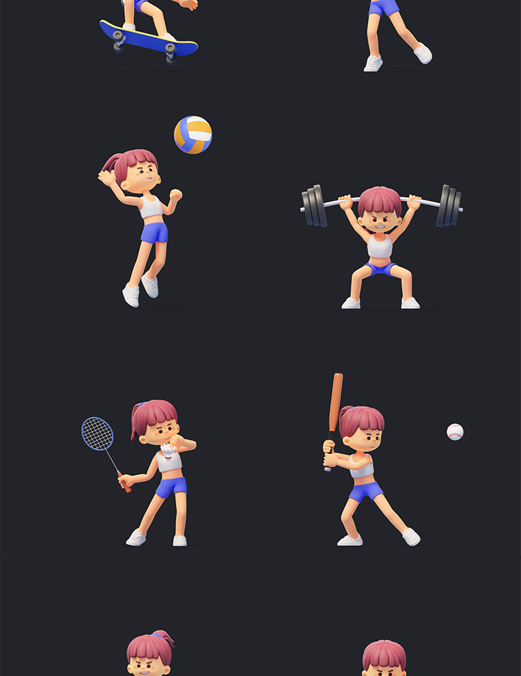 3D立体运动插画羽毛球拍篮足球男女孩blend fig矢量图形素材 声明:本站所有资源版权均属于原作者所有,这里所提供资源均只能用于参考学习用,请勿直接商用。若由于商用引起版权纠纷,一切责任均由使用者承担。更多说明请参考 VIP介绍。