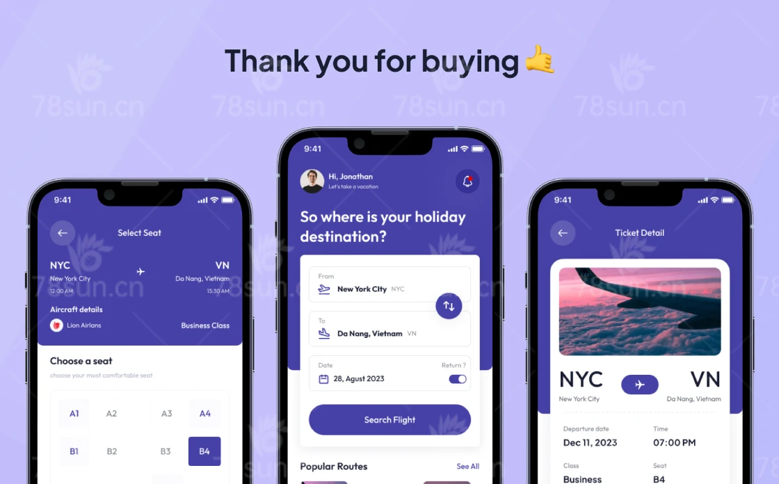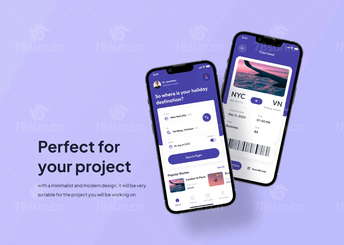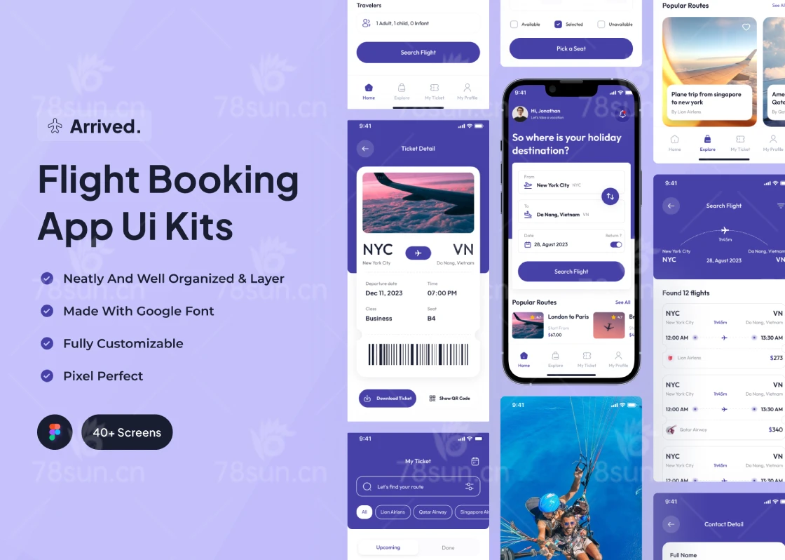 航班预订应用程序设计app UI套件,商务简洁风格,共40多个移动界面设计,figma格式! 声明:本站所有资源版权均属于原作者所有,这里所提供资源均只能用于参考学习用,请勿直接商用。若由于商用引起版权纠纷,一切责任均由使用者承担。更多说明请参考 VIP介绍。