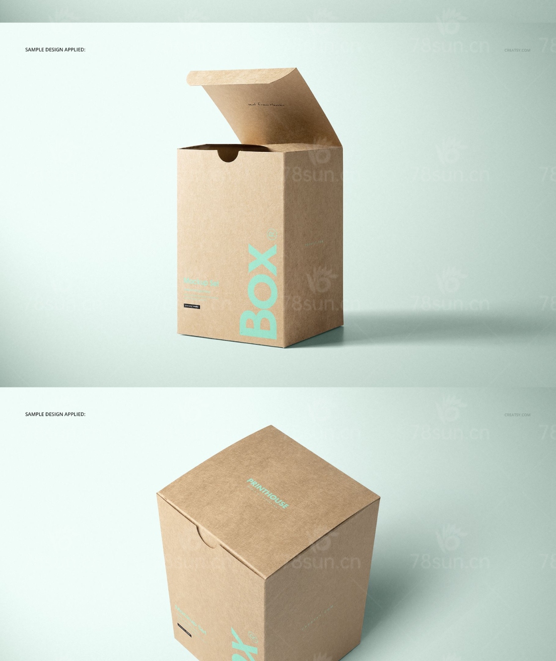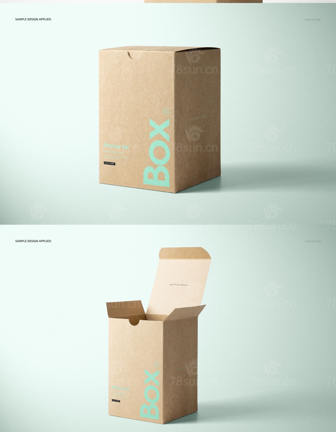 牛皮纸包装盒礼盒可以为背景设置自定义颜色和纹理,改变盒子的设计也很容易。你可以移除盒子模型层中的物体和阴影,以透明保存。