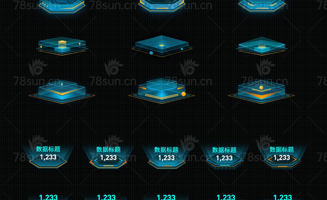 数据可视化网站大屏底座展示台web ui组件设计模板,矢量图形,颜色形状100%可编辑,共41个,带预览图 声明:本站所有资源版权均属于原作者所有,这里所提供资源均只能用于参考学习用,请勿直接商用。若由于商用引起版权纠纷,一切责任均由使用者承担。更多说明请参考 VIP介绍。
