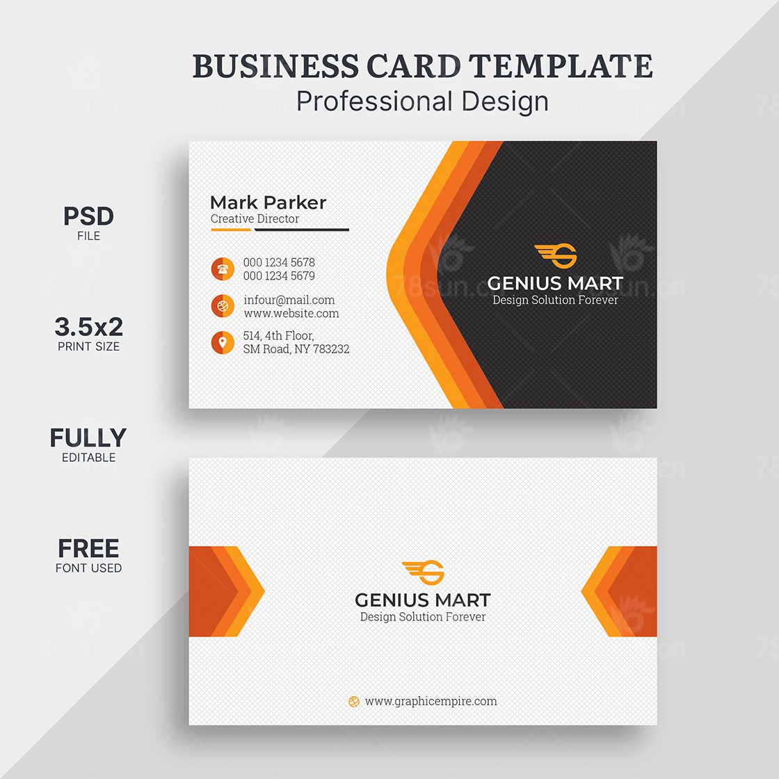 橙色商务纹理名片设计psd模板