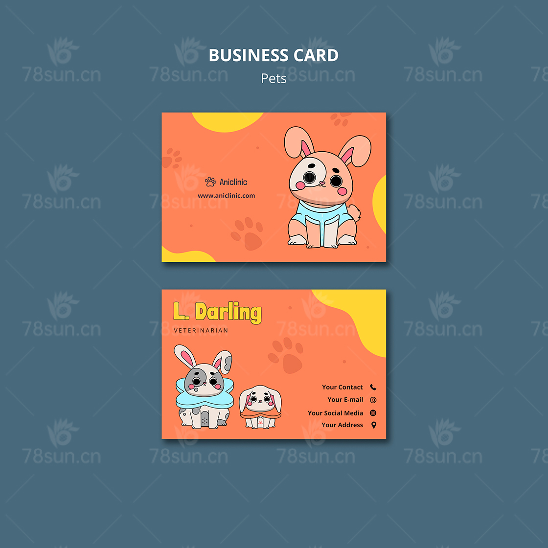 可爱卡通宠物店名片设计psd模板,矢量图形,均可编辑 声明:本站所有资源版权均属于原作者所有,这里所提供资源均只能用于参考学习用,请勿直接商用。若由于商用引起版权纠纷,一切责任均由使用者承担。更多说明请参考 VIP介绍。