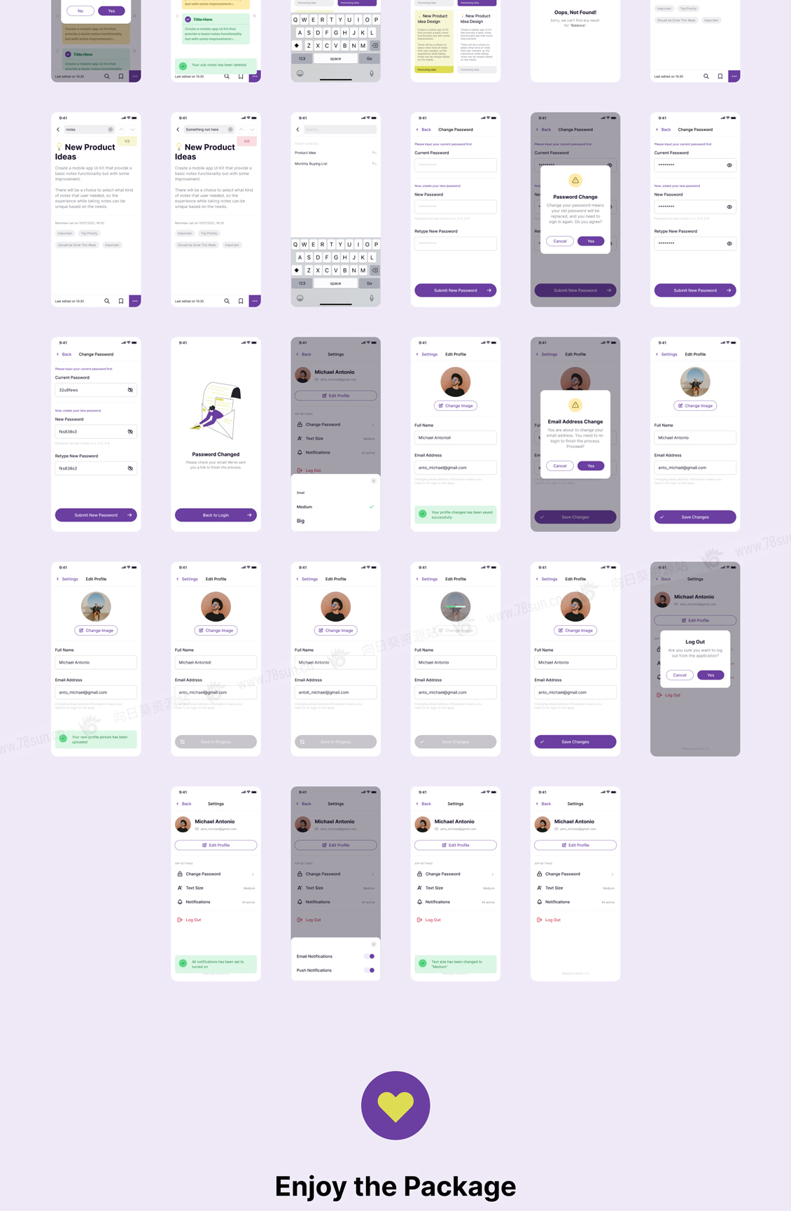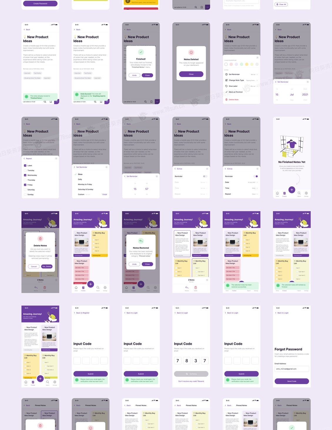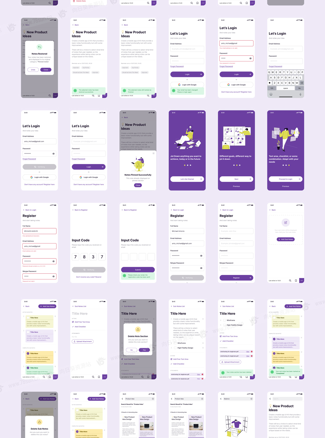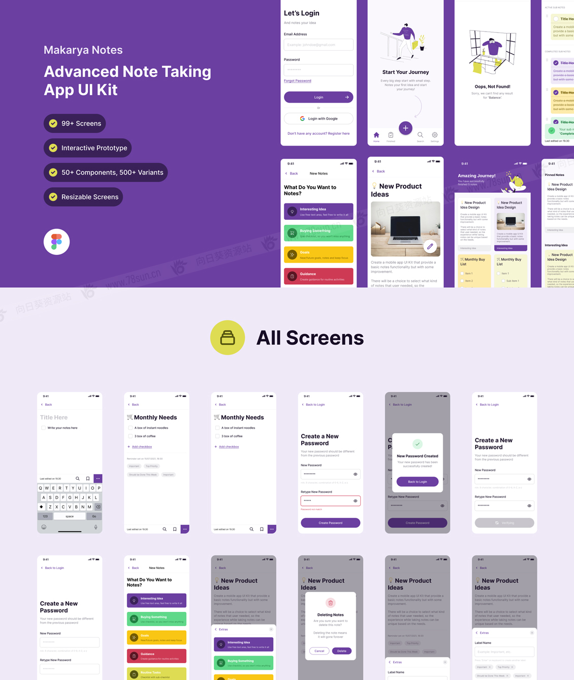 一个高级笔记应用程序的设计系统和UI套件,专门使用Figma制作。拥有超过99个屏幕,每个屏幕由各种组件排列,从原子级到生物体级组件。