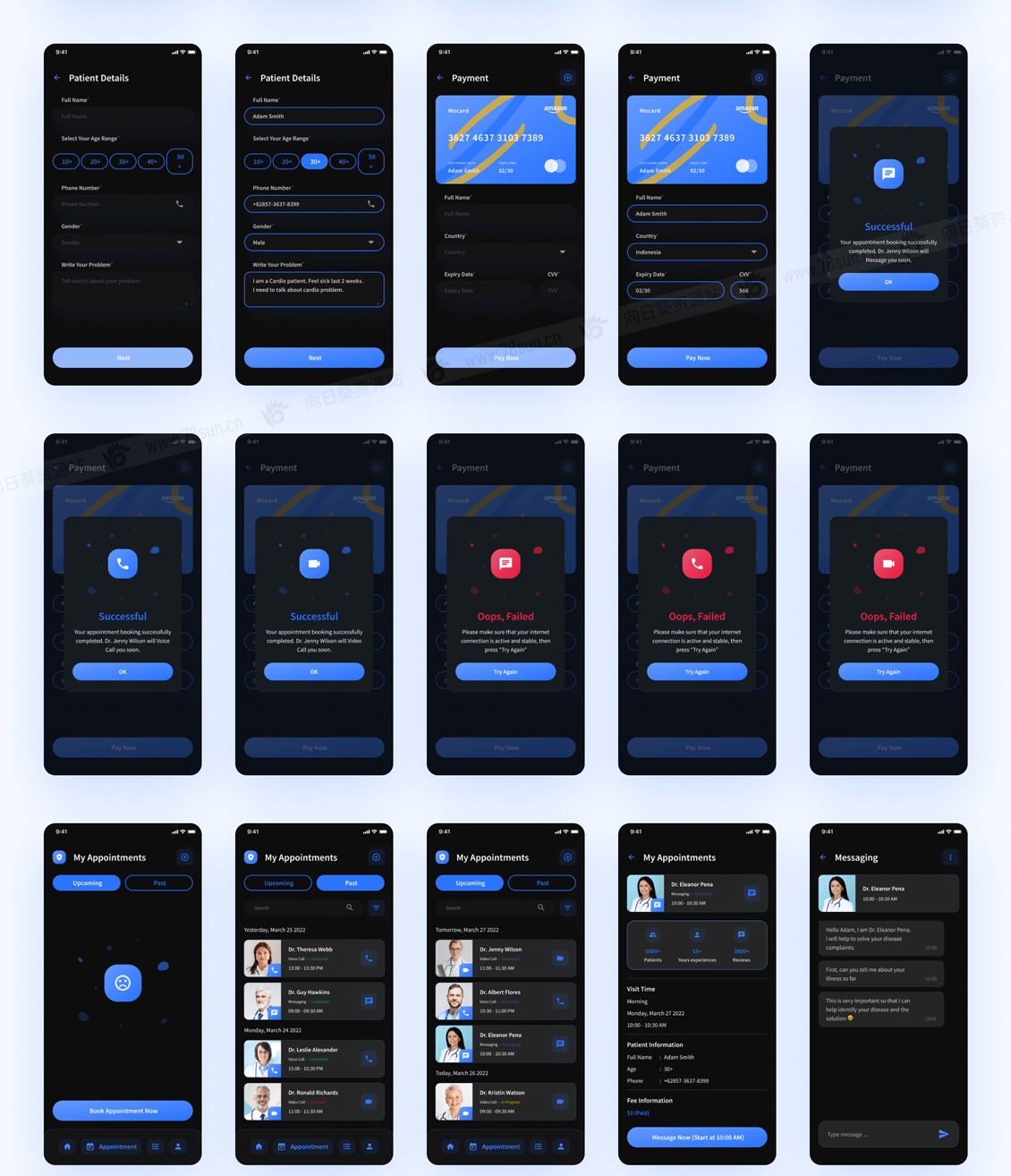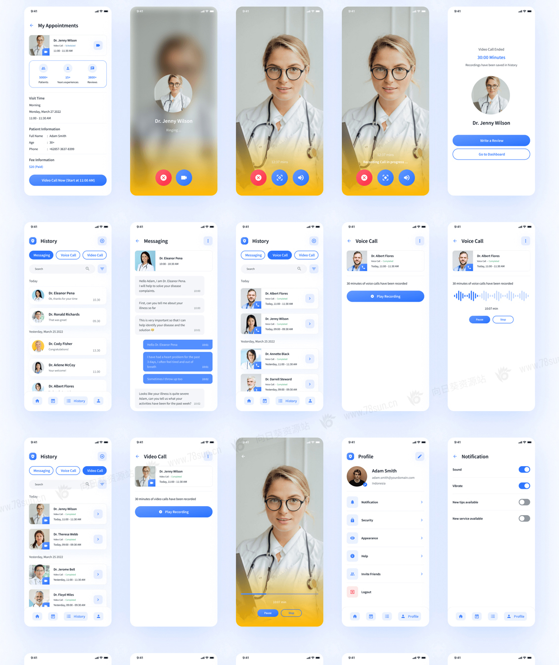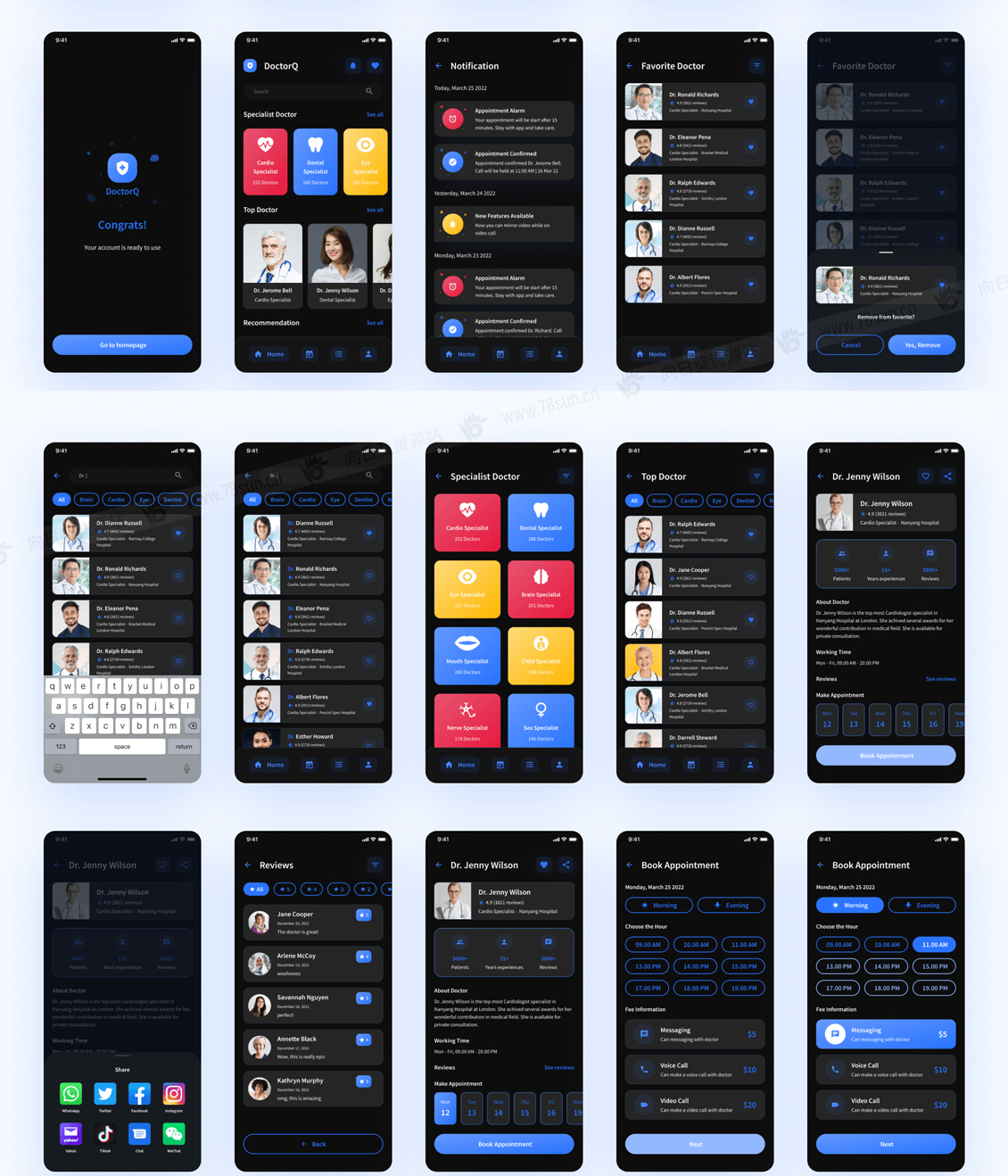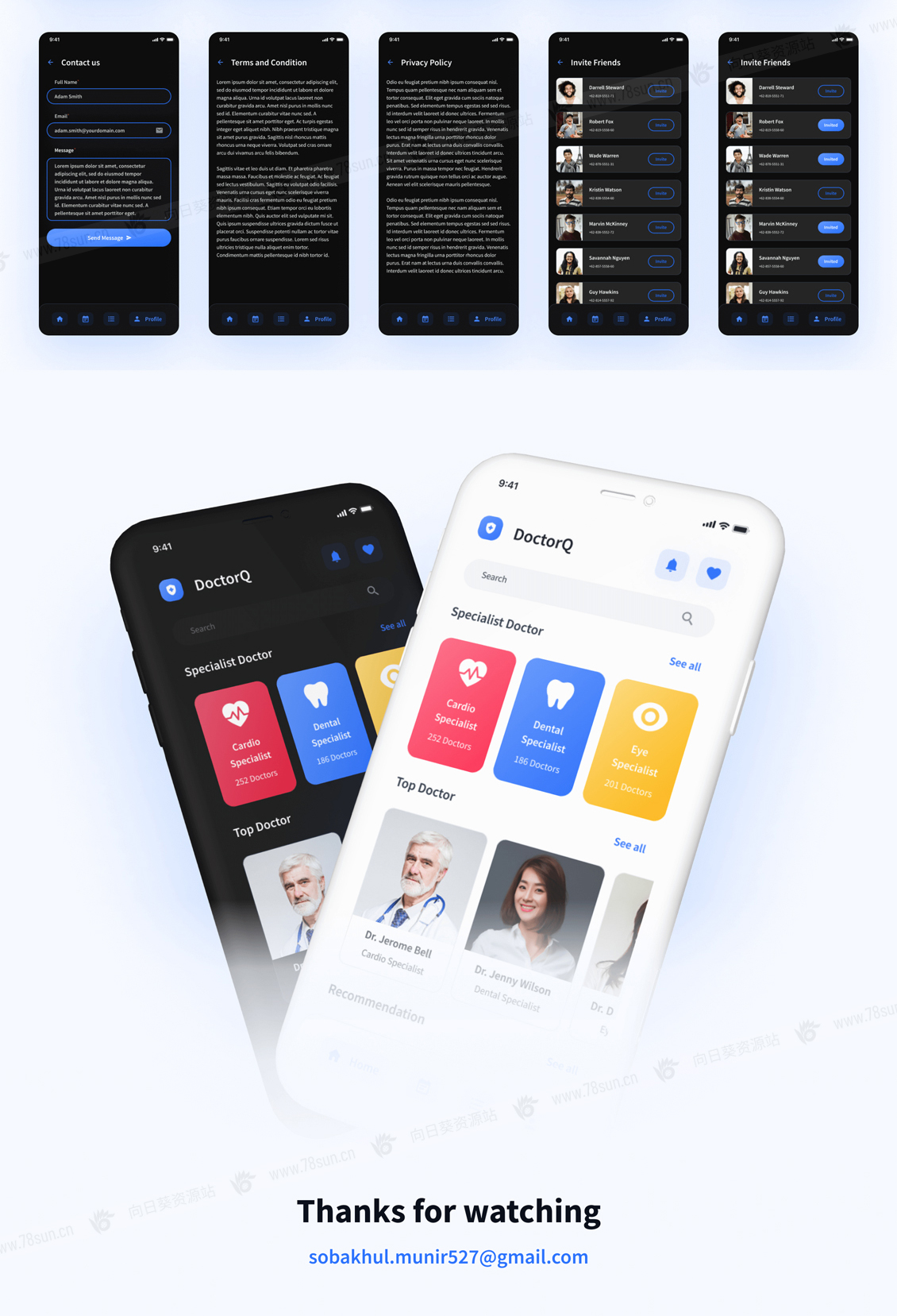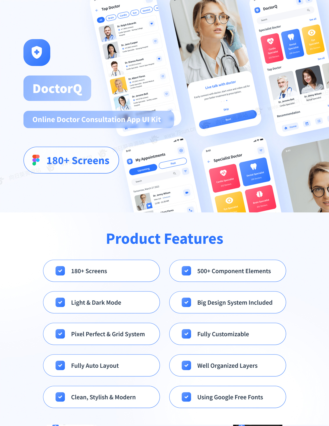 一个高级和高质量的在线医生咨询移动应用程序UI工具包,有182个屏幕,可高度定制。Figma提供设计。此外,该设计还配备了一个版本的明暗模式。