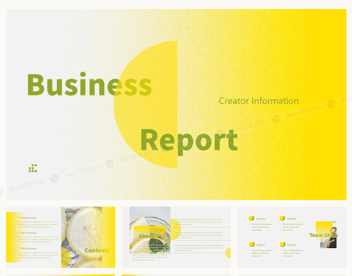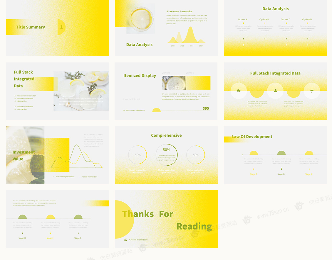 潮流弥散渐变蔬果商务幻灯片PPT模板,共15个页面! 声明:本站所有资源版权均属于原作者所有,这里所提供资源均只能用于参考学习用,请勿直接商用。若由于商用引起版权纠纷,一切责任均由使用者承担。更多说明请参考 VIP介绍。