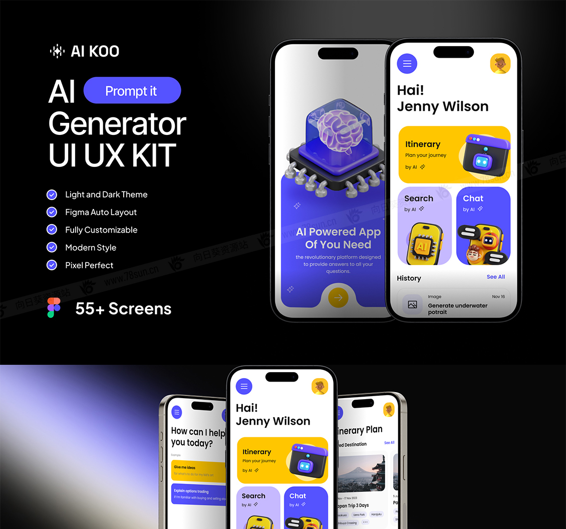 用这个UI KIT构建一个专业的AI生成器移动应用程序UI KIT。