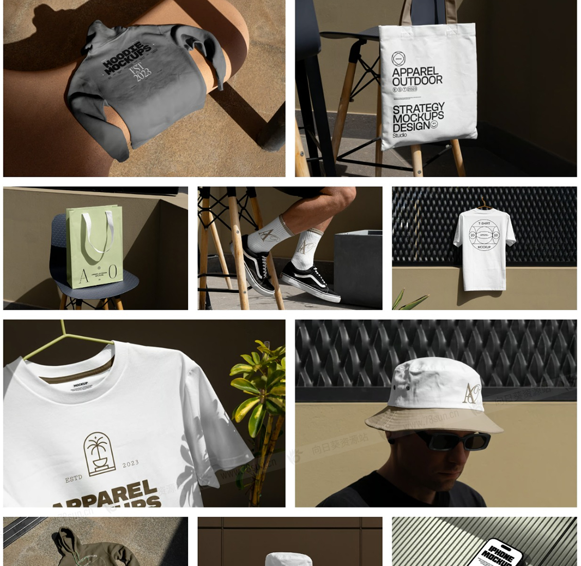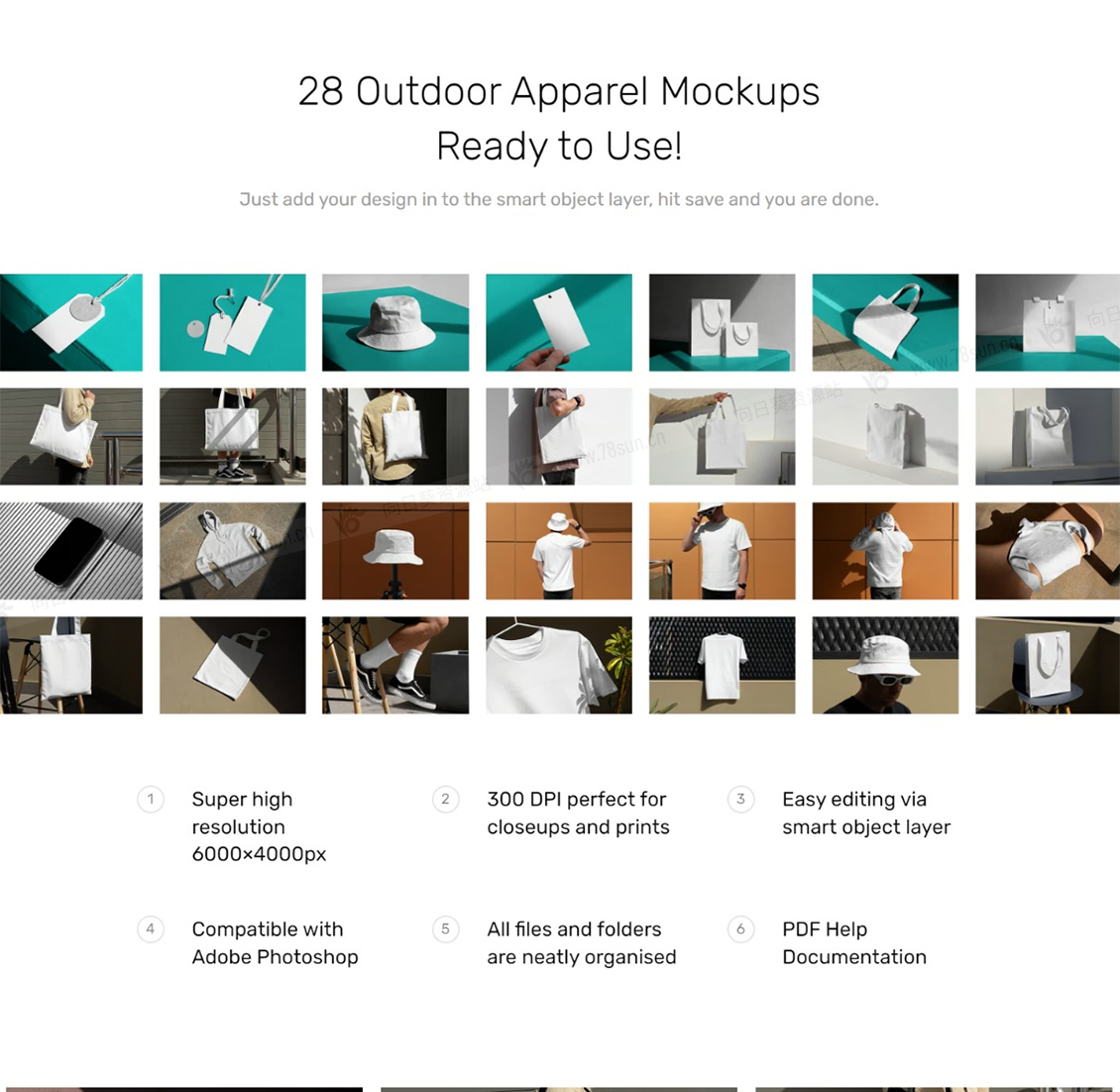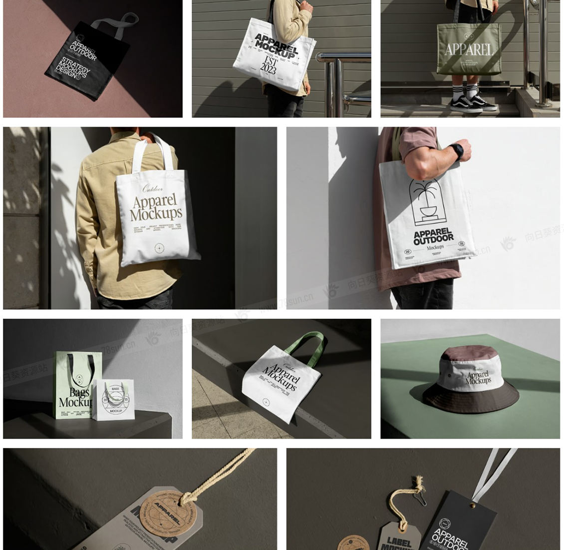 户外自然环境场景中的服装品牌设计贴图样机模型,总共有28个预制场景,样机中包含有:吊牌、T恤、帽子、购物袋、卫衣、袜子等,通过智能对象层轻松编辑。所有文件和文件夹都组织整齐。只需将您的设计添加到智能对象层,点击保存即可完成。调整光线和阴影的不透明度以获得不同的对比度。使用这组户外服装样机让您的街头服饰品牌项目演示更加真实和有吸引力。