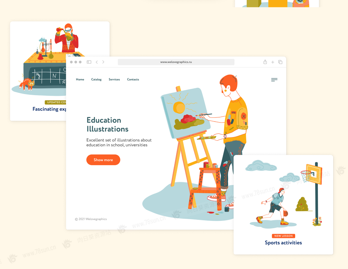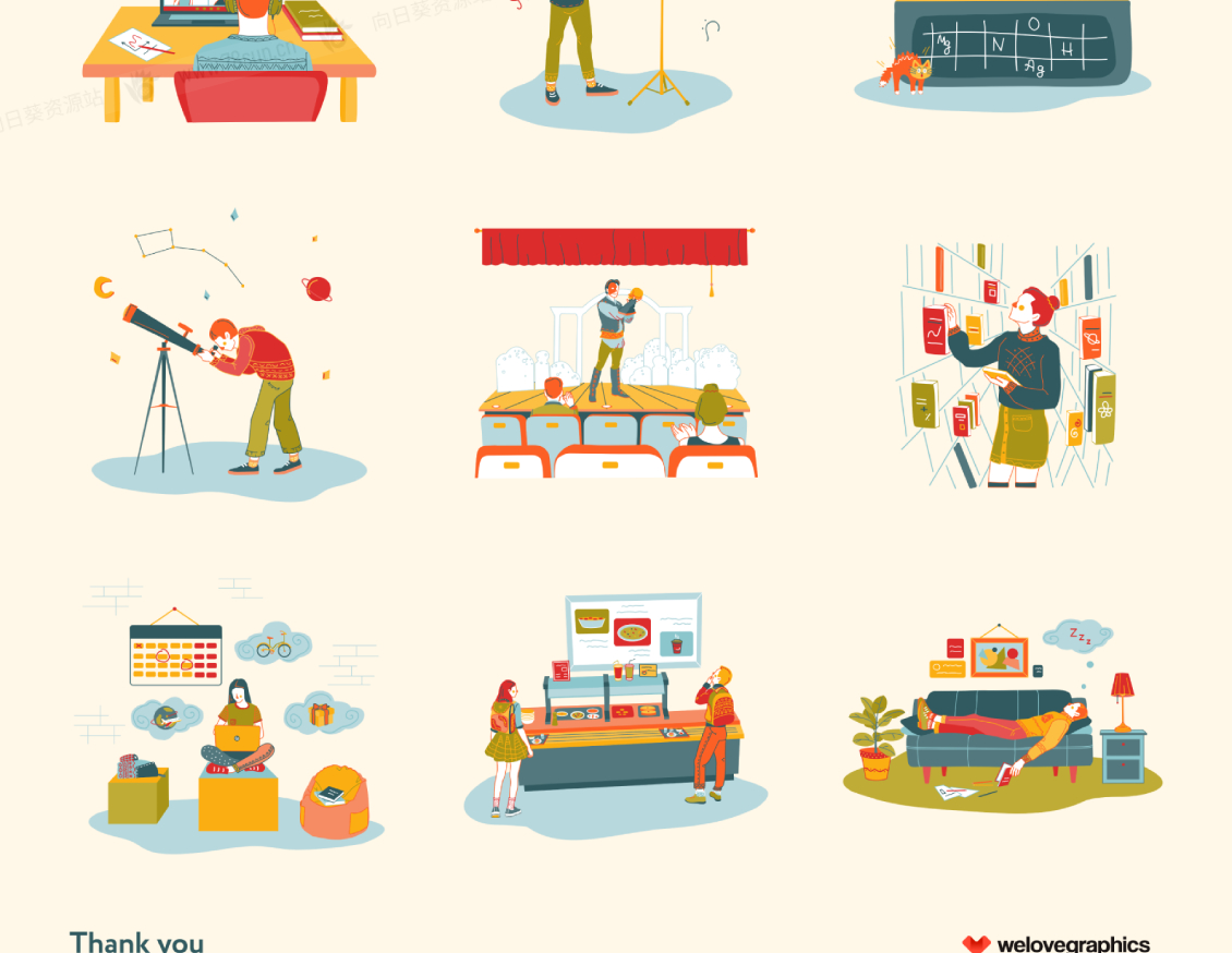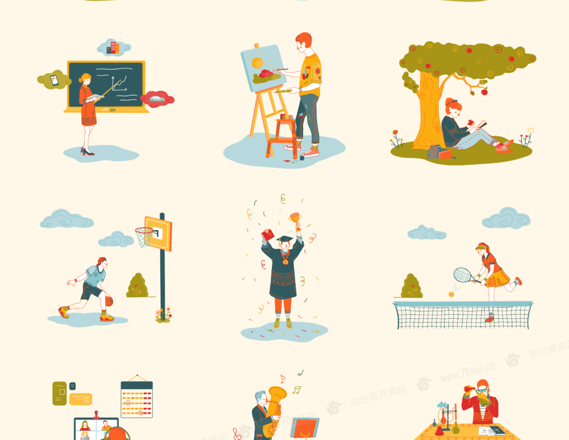 20个色彩缤纷、令人难以置信的插图,主题是教育、学校课程或大学生活。风格化的插图将装饰任何网站,登陆页或应用程序,致力于教育,在线课程。充分利用插图的响应性,根据需要调整颜色。这很容易适应你的创意项目,并尽快启动它。
