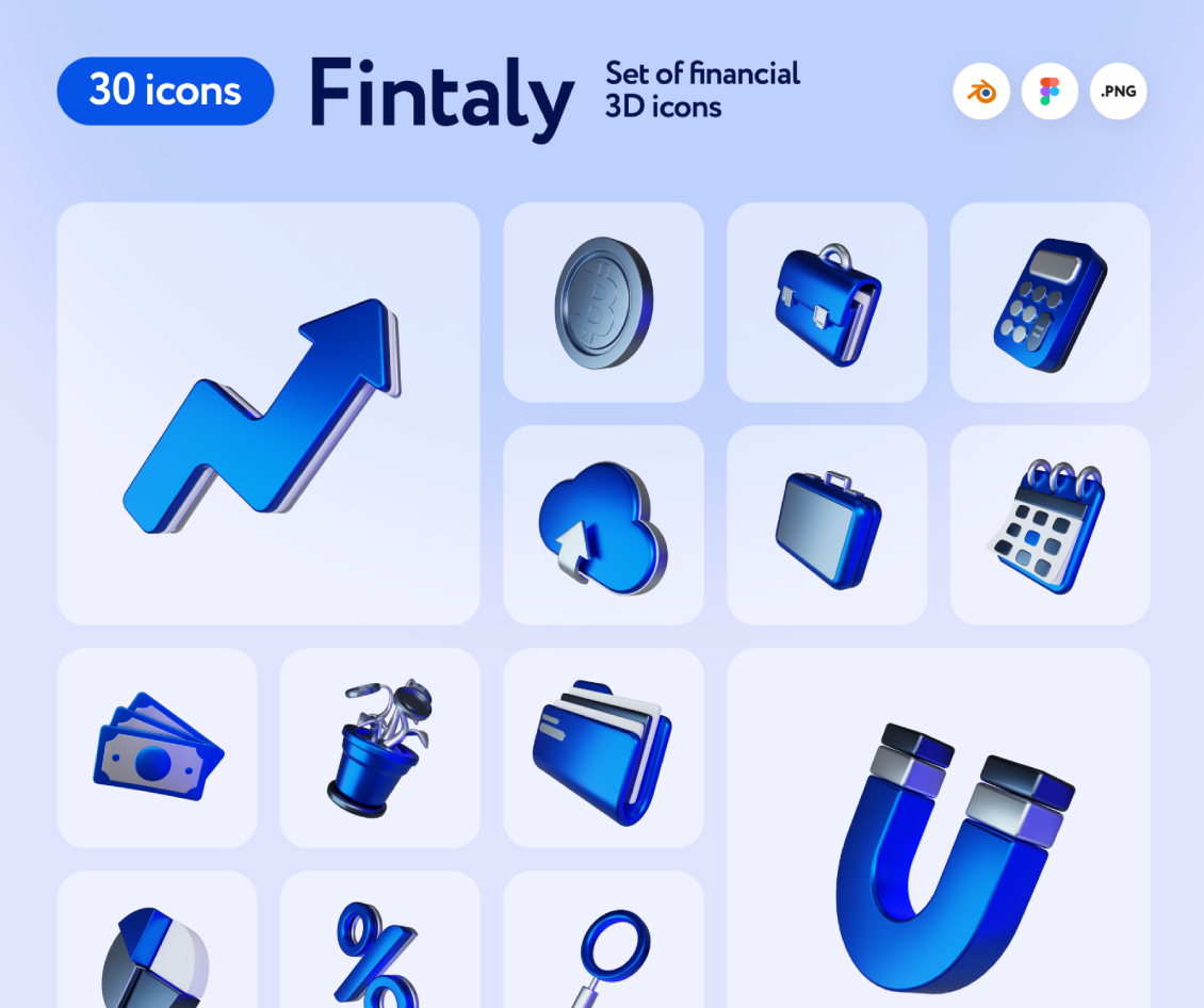 时尚的30个金属3D图标,主题是金融。非常适合设计网站、应用程序或现代演示。简单和容易的适应将有助于快速调整图标,以您的风格和项目。
