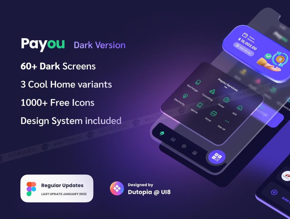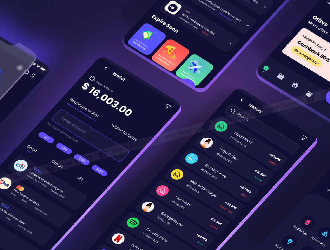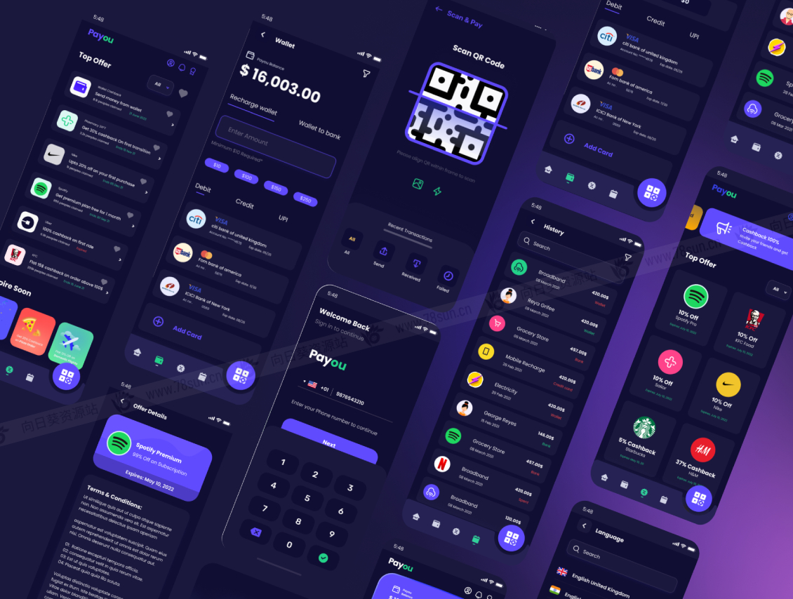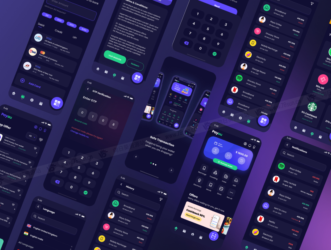 包括60多个高质量的屏幕,将帮助您启动您的财务,钱包和银行项目,并加快您的设计过程。它兼容iOS和Android平台。这个UI经过精心设计,符合现代设计趋势,利用新鲜的颜色,并提供良好的用户体验。