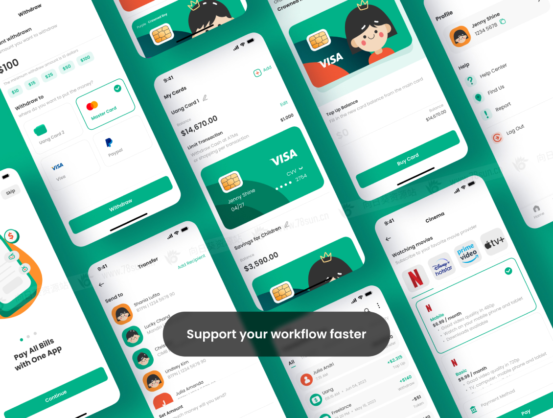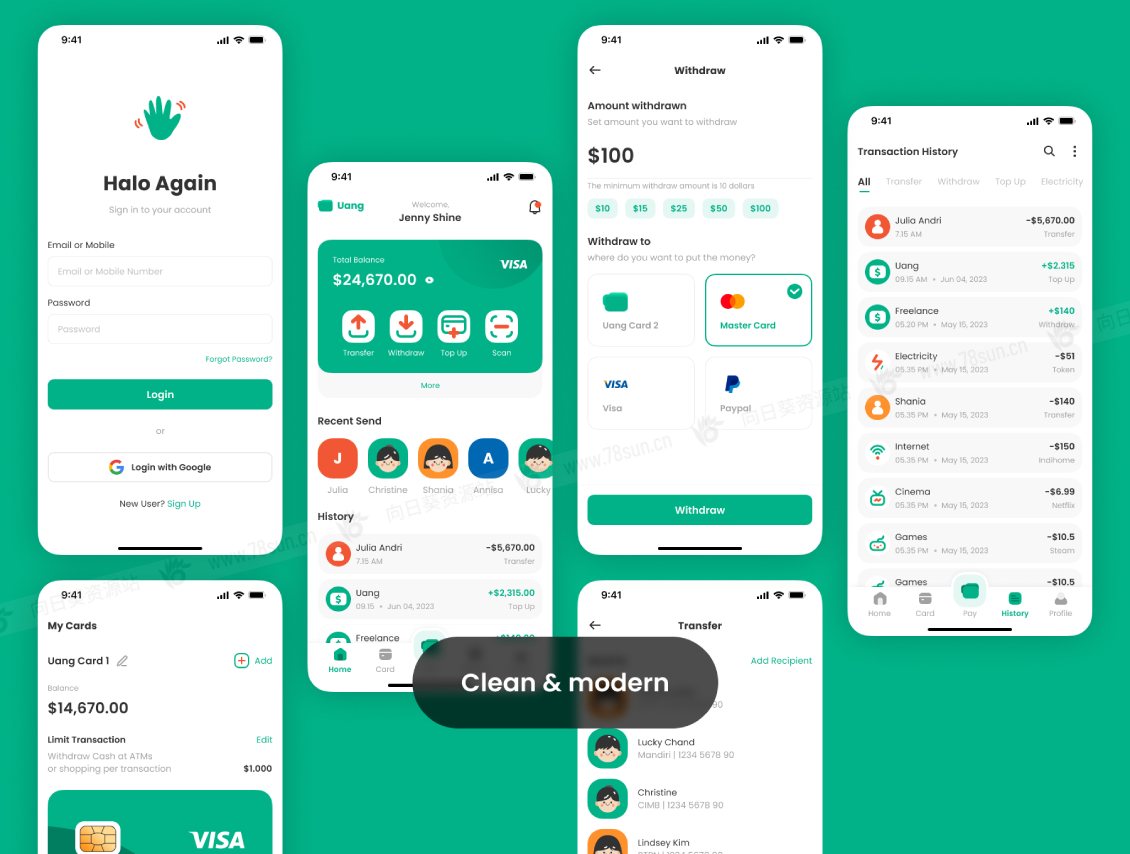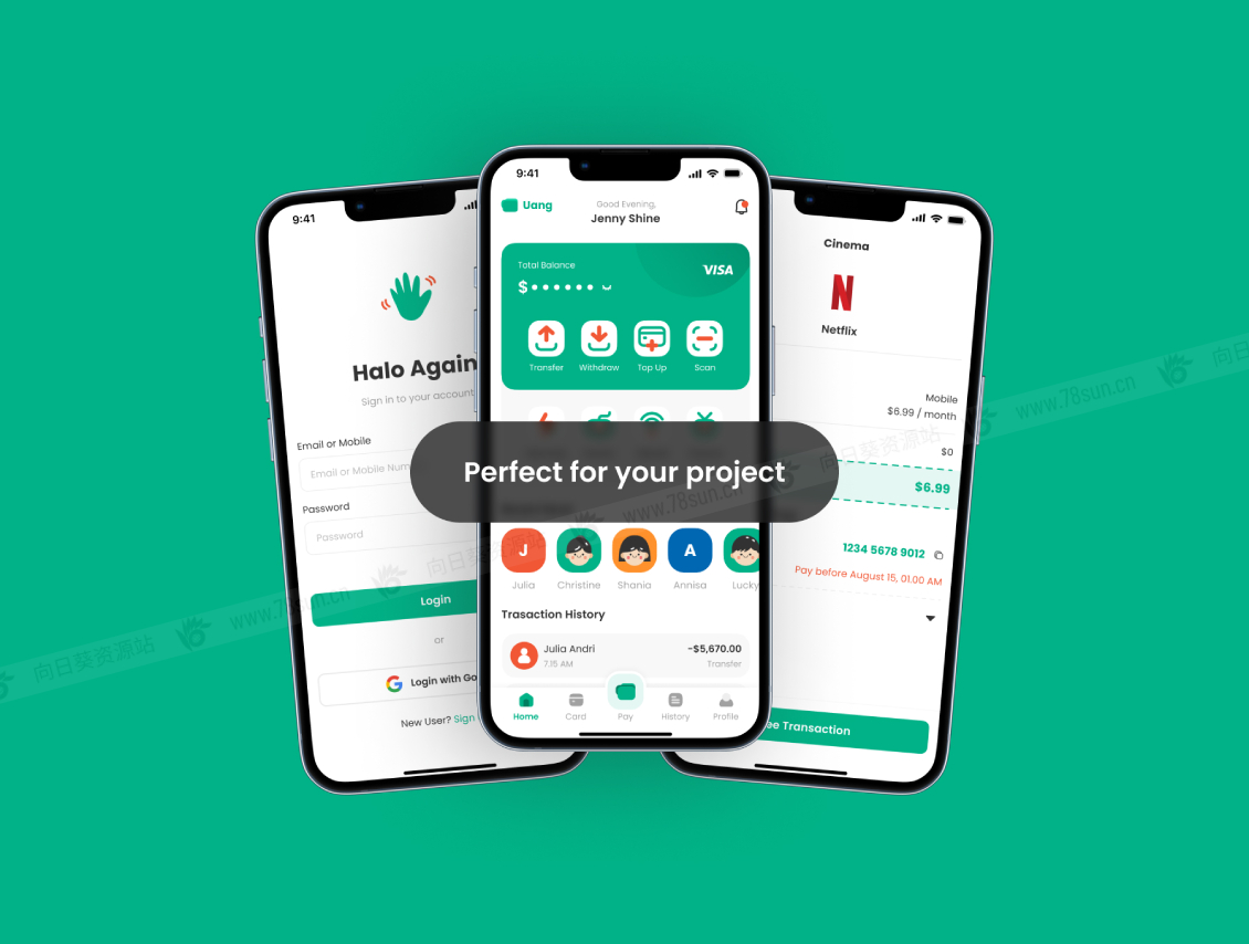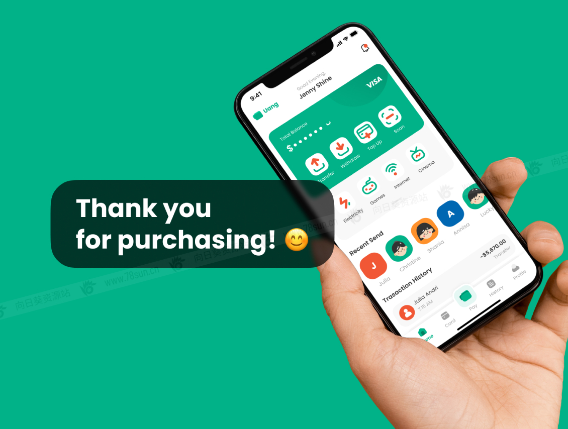 Uang是一款简洁现代的手机银行应用,100+高品质屏幕设计,易于Figma使用,Uang工具包经过精心设计并按功能分组,使您可以轻松地自定义它们以满足您的需求