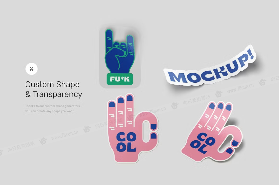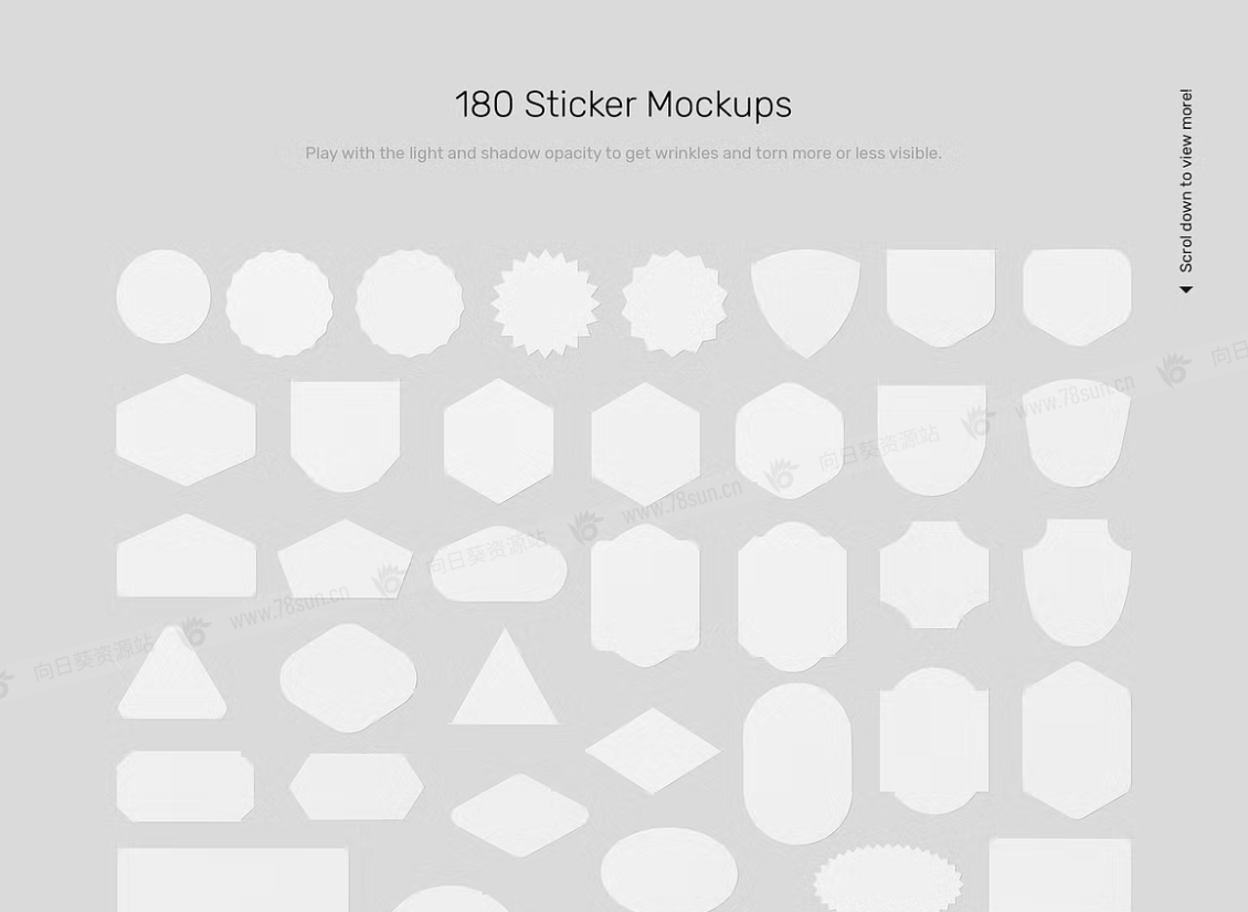 180个贴纸模型多种形状图案设计展示样机Mockups,让您的贴纸设计演示更具吸引力!玩弄光影的不透明度,让皱纹和撕裂或多或少可见。借助我们的自定义形状生成器,您可以创建任何您想要的形状。我们制作了一些文具模型,让您有一个更好的开始。构图您自己的场景或使用我们的预制场景。只需将设计替换到智能对象层,点击保存,即可完成。所有模型均以 300 dpi 的超高分辨率专业拍摄。非常适合印刷和网页设计。包含: