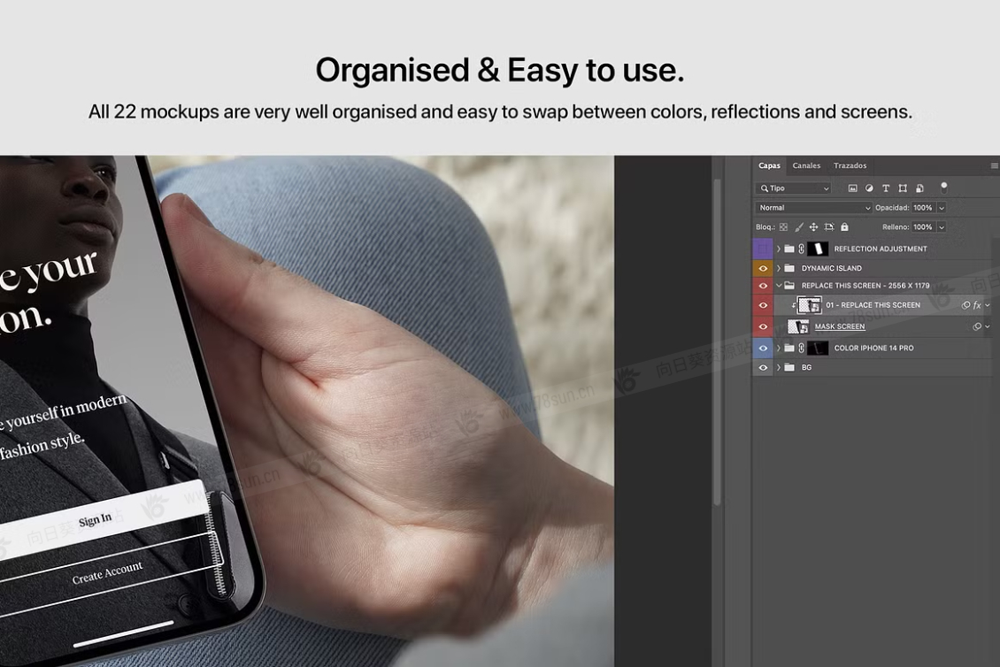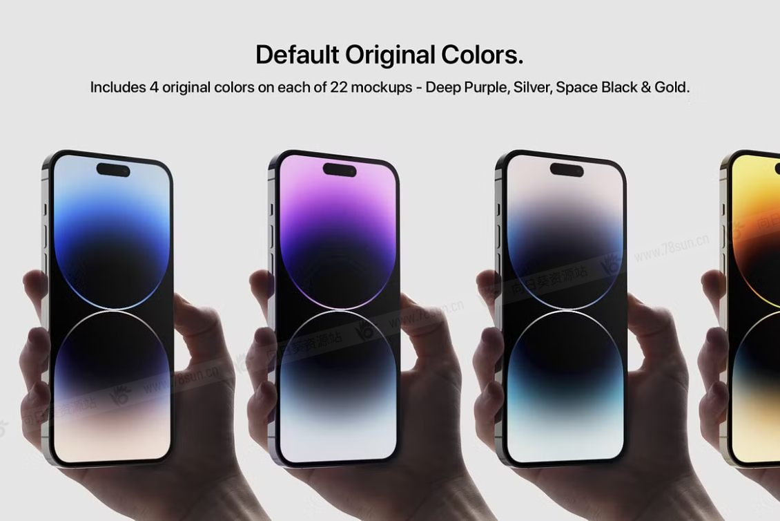 - 包括 22 个 Phone 14 Pro 手持模型 – PSD 高质量文件(您将在第二张图片中看到的所有场景,它们已经包含在购买中)。