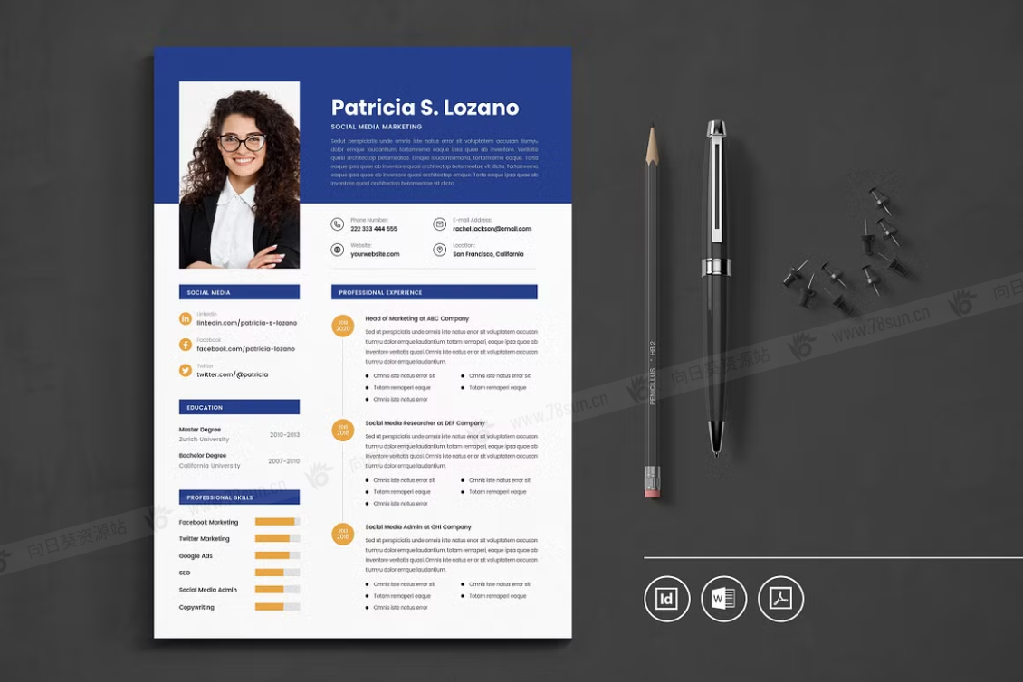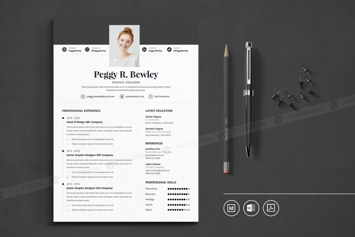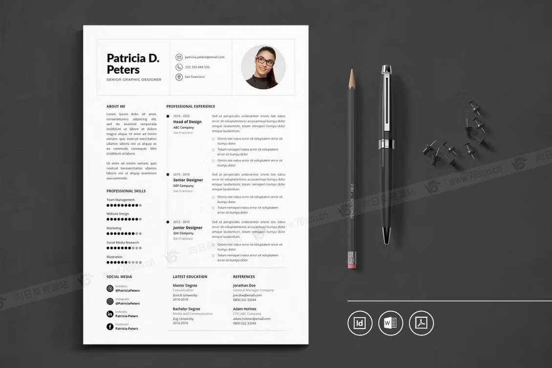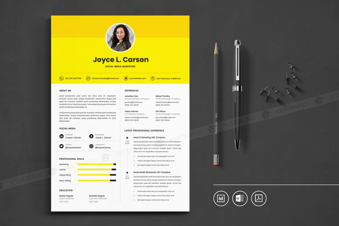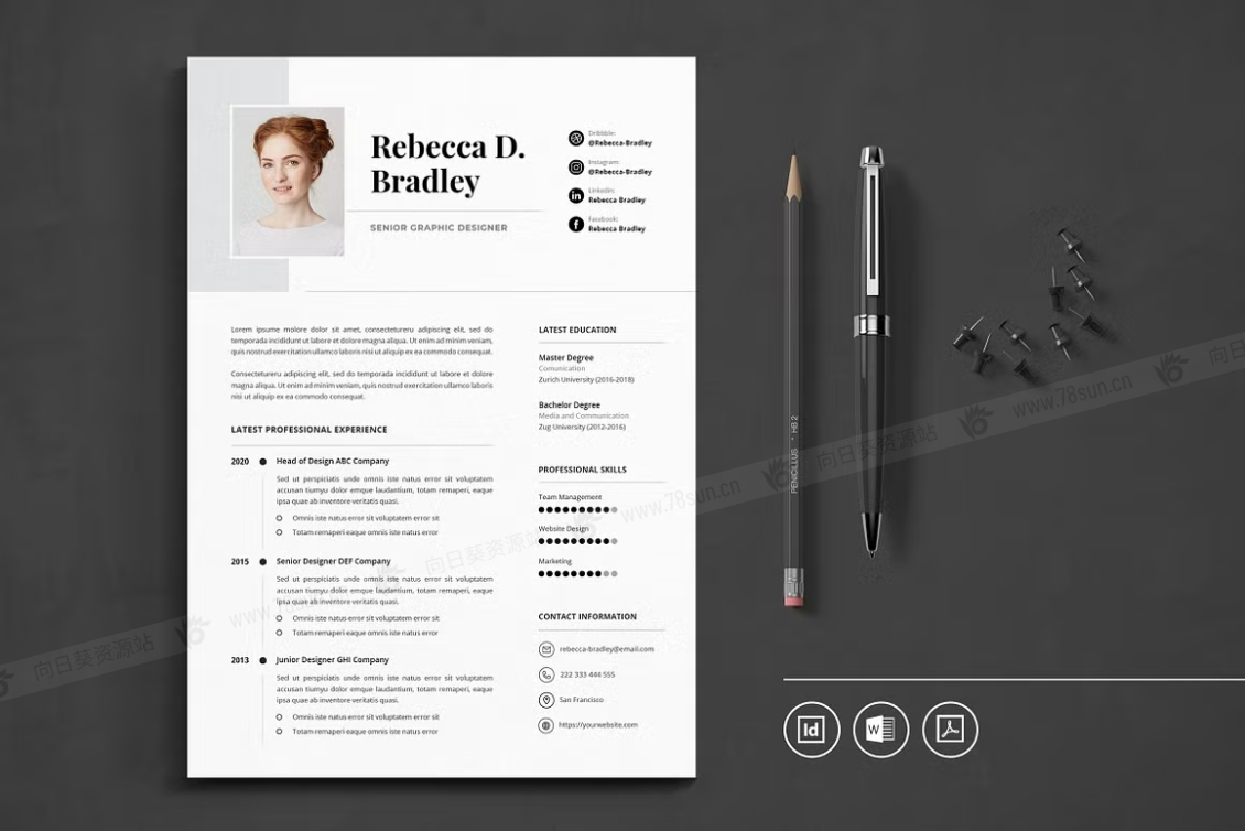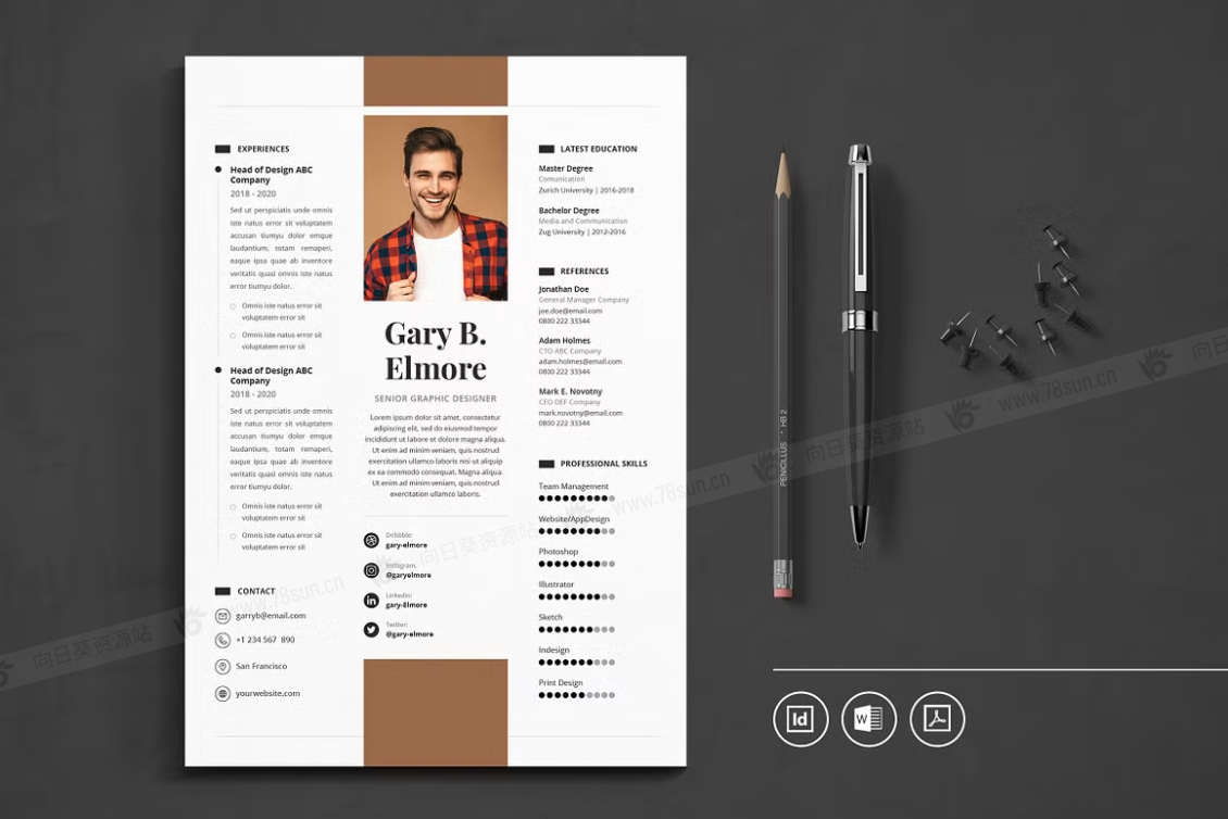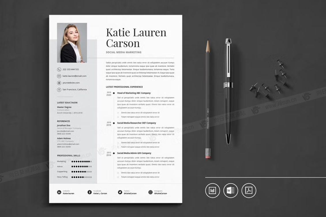 这个模板是为你制作的,让你的简历看起来专业和现代。它适合求职者、员工、商人、平面设计师、专业艺术家、商业教练、设计师、开发人员、社交媒体经理、程序员等等。此模板支持Adobe Indesign,Microsoft Word