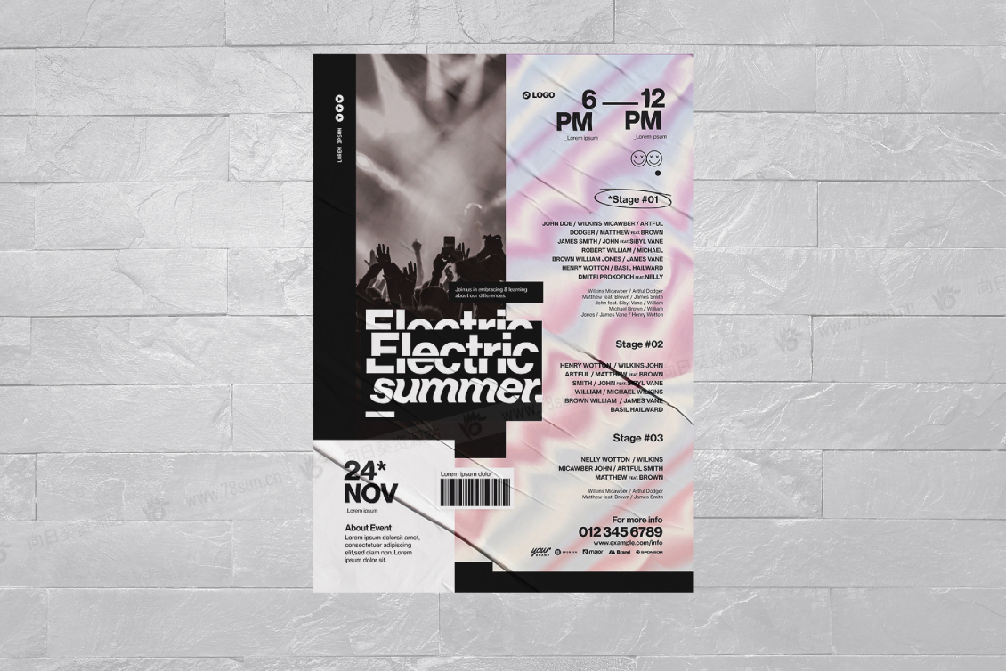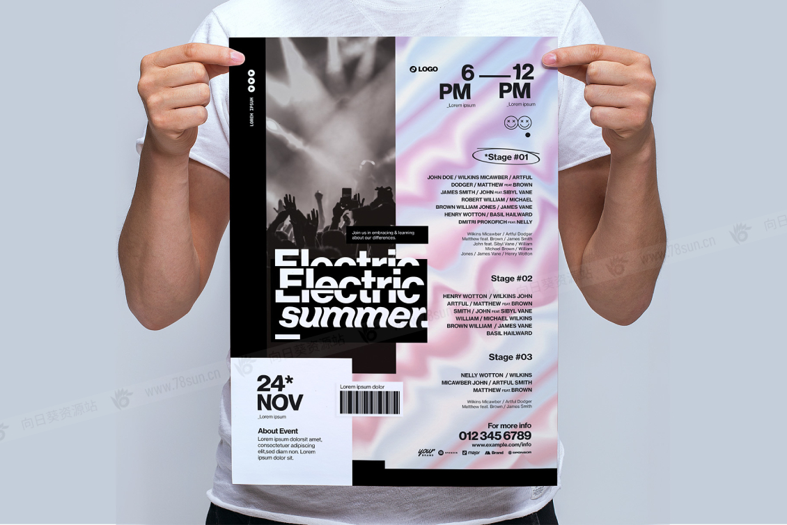 酸性风音乐节娱乐活动产品宣传广告海报设计ai模板,这个音乐活动海报模板非常适合 DJ、夜总会和派对。它用途广泛且易于定制,是节日、音乐会和其他音乐活动的绝佳选择。