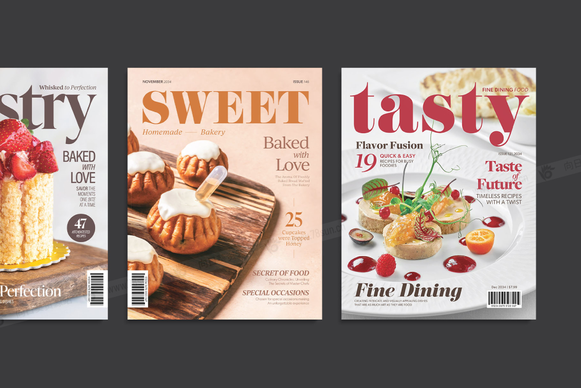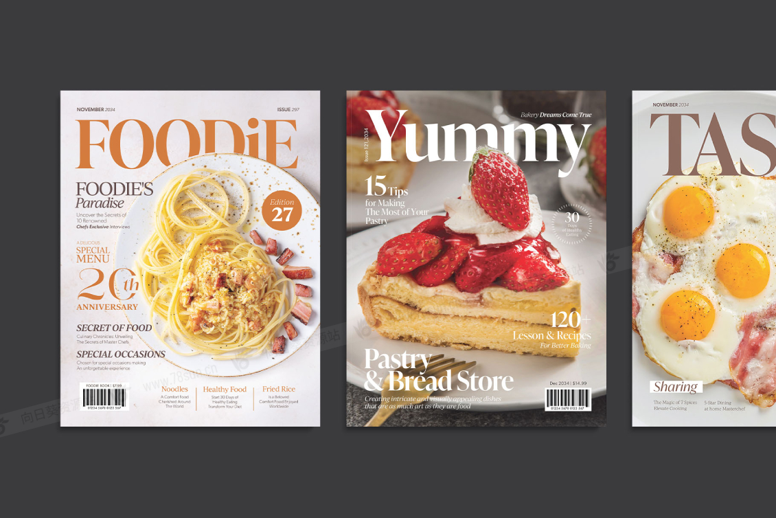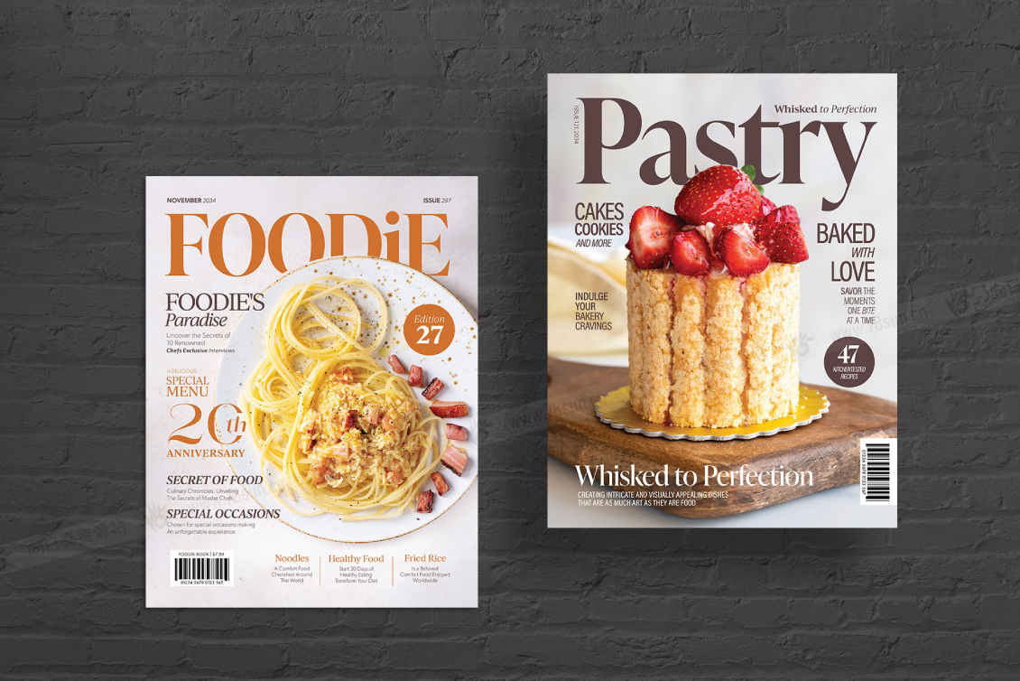 美食烹饪杂志食谱食品手册psd ai封面设计模板,这些模板非常适合烹饪、食品或餐厅主题杂志,为首页提供专业布局。提供 Illustrator Ai、Photoshop PSD 和 EPS 格式,最适合厨师、餐馆老板和美食爱好者。非常适合制作视觉上令人惊叹的烹饪书、餐厅杂志或杂志封面。体验轻松的编辑和自定义,以满足您的口味。(不含美食图片)