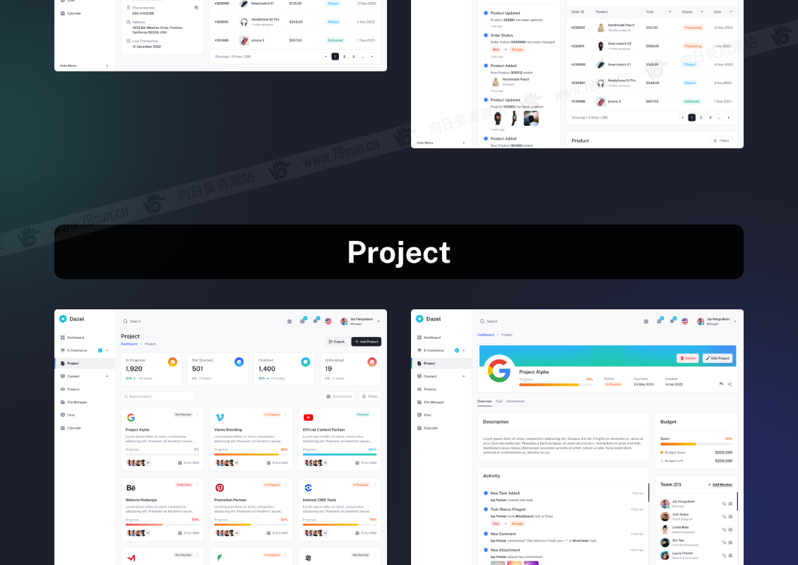 dashboard仪表盘电商项目管理财务后台管理系统网站web ui设计模板,包含 128+ 预制屏幕,易于定制,使用自动布局进行设计,类型仪表板包括: