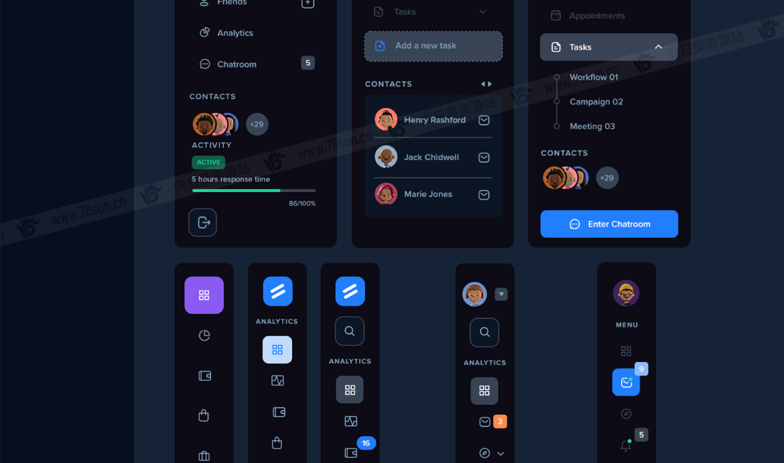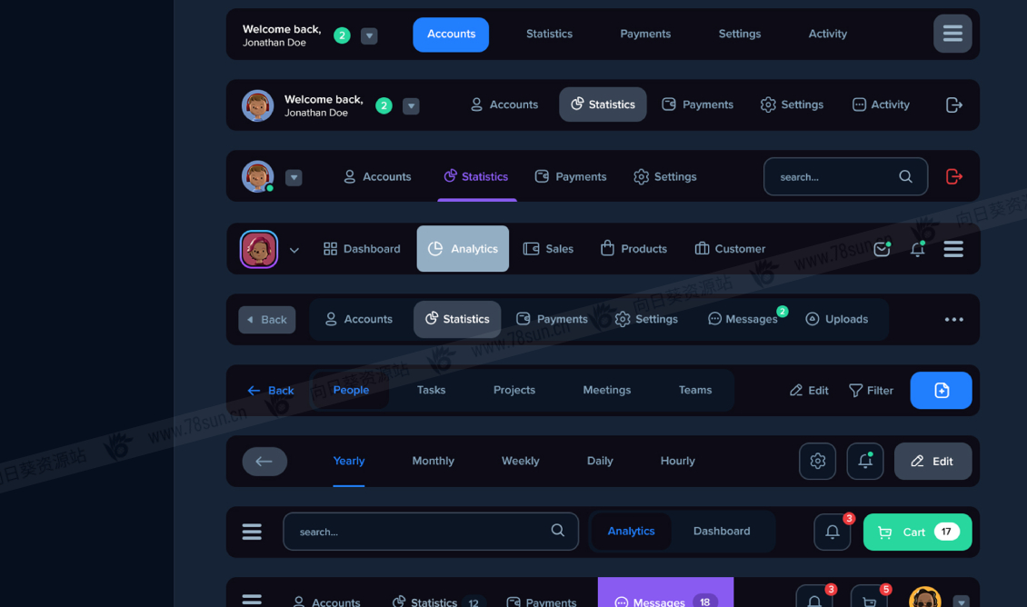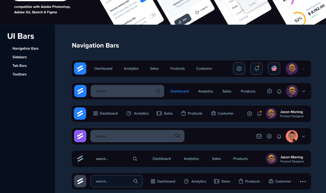 可定制和可调整的设计系统和可视化编辑器,带有风格指南和500 +即用型组件。此样式指南和编辑器包含不同的元素,例如导航栏、选项卡栏、侧边栏、图表、信息图表、符号、样式、UI 卡、表格等等。它是适用于 Web、移动设备和桌面设备的完美“UI 设计入门套件”。 Adobe Photoshop、Adobe XD、Sketch 和 Figma格式