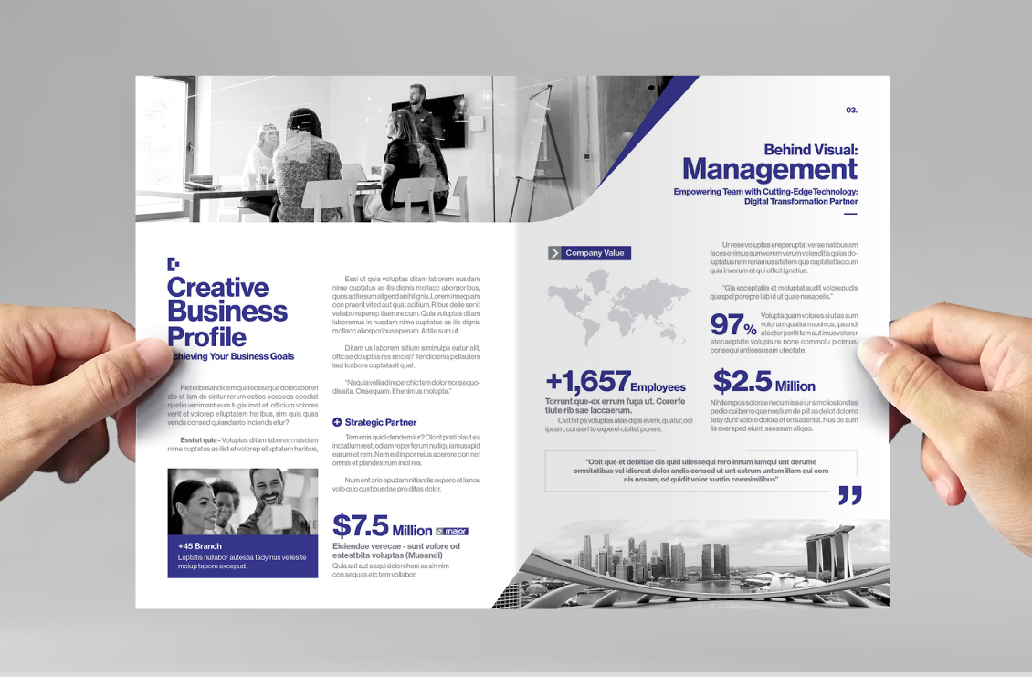 这个企业双折小册子模板非常适合企业、杂志、报告和传单。它采用 InDesign INDD 格式,采用专业布局,外观时尚时尚。此模板非常适合年度报告、绩效演示和营销结果或材料,可让您轻松定制您的小册子或杂志以满足您的特定需求。
