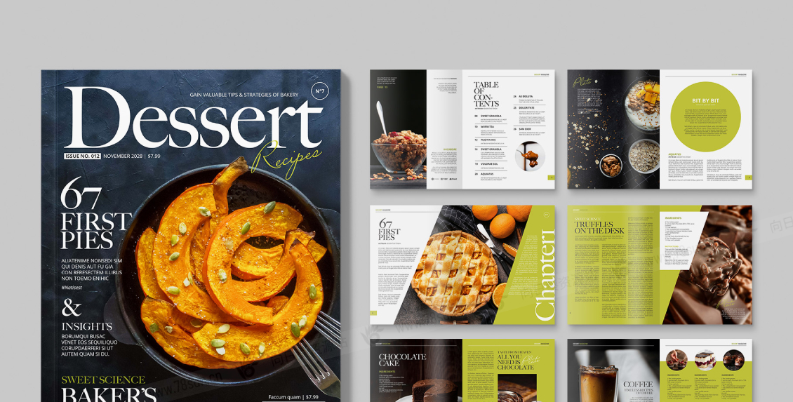 此模板非常适合烹饪爱好者、美食家、烹饪学校、餐厅和食谱作者,可让您创建具有视觉吸引力的食品相关杂志或小册子。其独特的杂志风格布局提供了一种现代和创造性的方式来展示您对食物和餐饮的热爱。无论您是在制作烹饪指南、餐厅菜单还是烹饪食谱集,这个易于使用的模板都将让您的烹饪创作栩栩如生