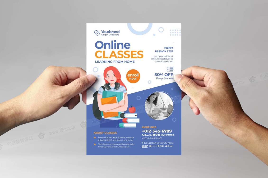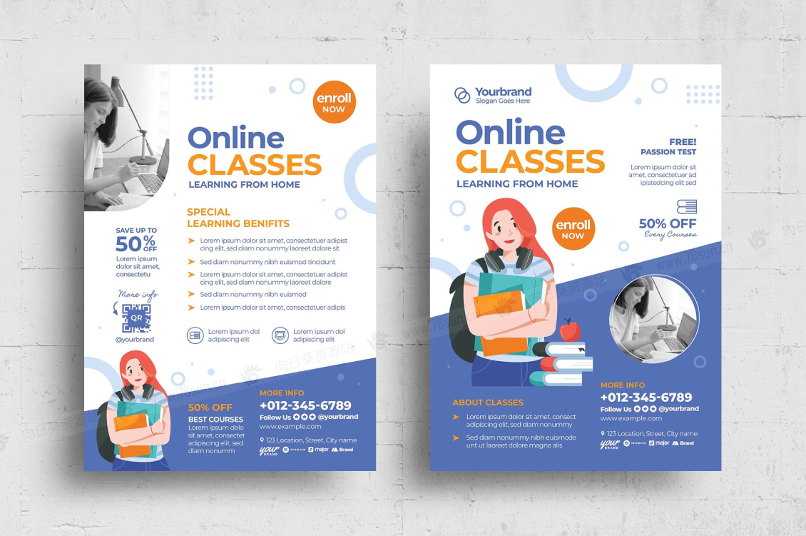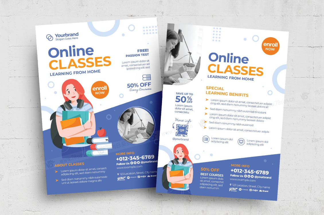 教育学校推广在线课程网络研讨会讲座宣传单psd ai设计模板,可以被学校、学院和大学校园用于各种教育目的。促进远程学习、网络研讨会或校内讲座、研讨会和其他教育活动。