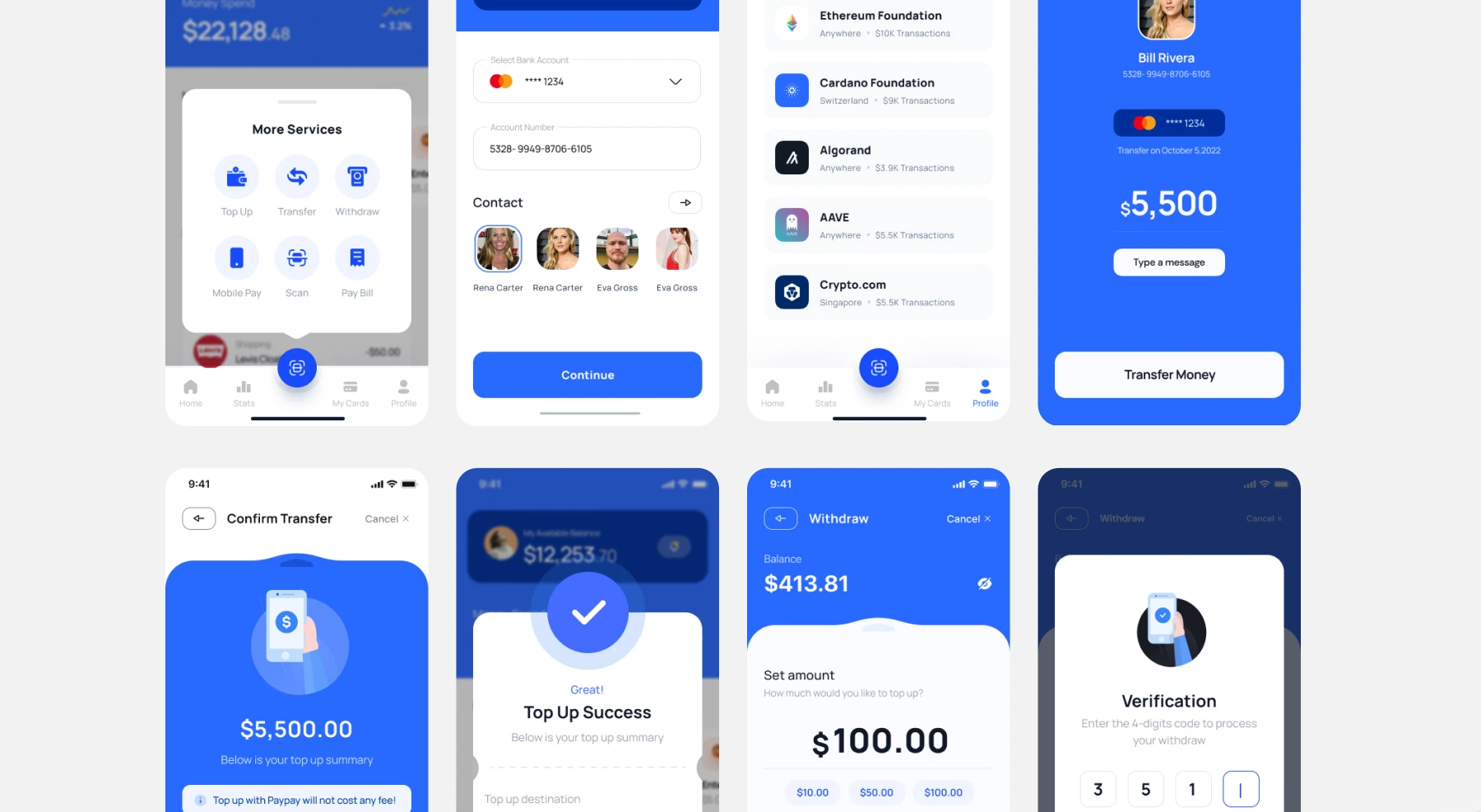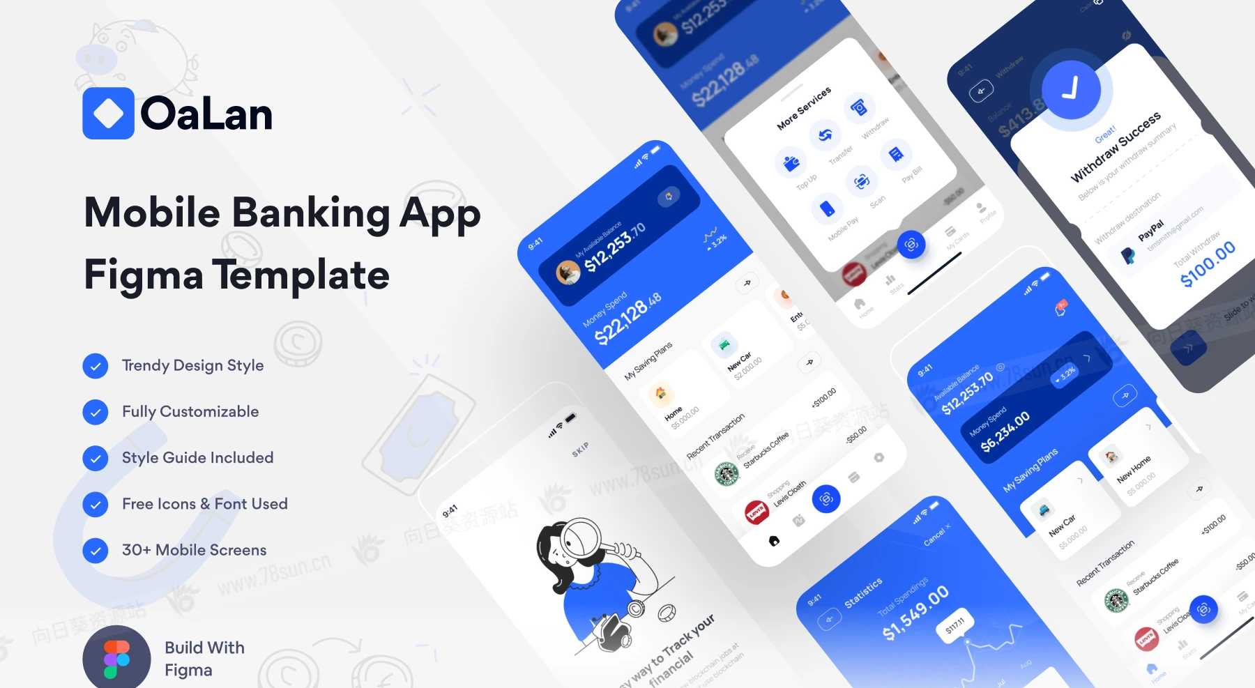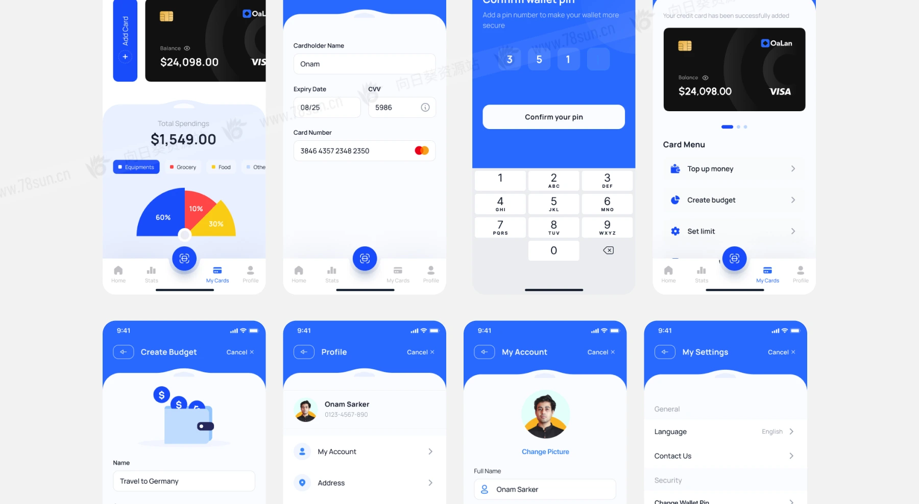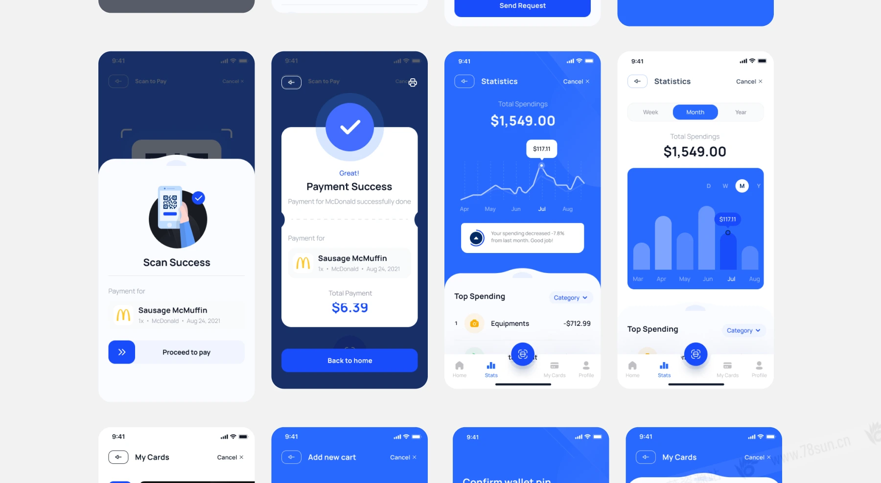 金融手机银行电子钱包支付app ui界面设计源文件模板,figma格式,共40个界面! 声明:本站所有资源版权均属于原作者所有,这里所提供资源均只能用于参考学习用,请勿直接商用。若由于商用引起版权纠纷,一切责任均由使用者承担。更多说明请参考 VIP介绍。