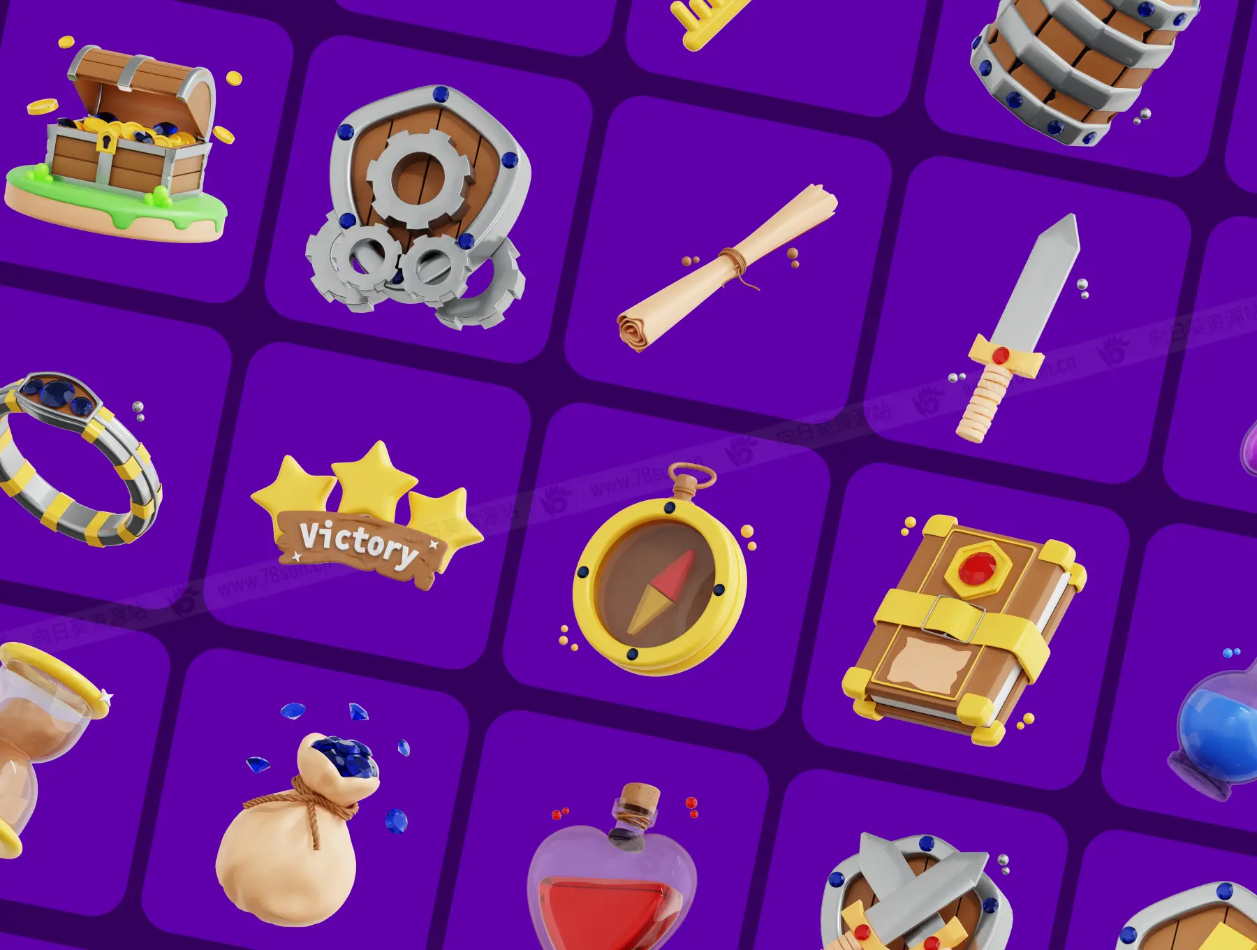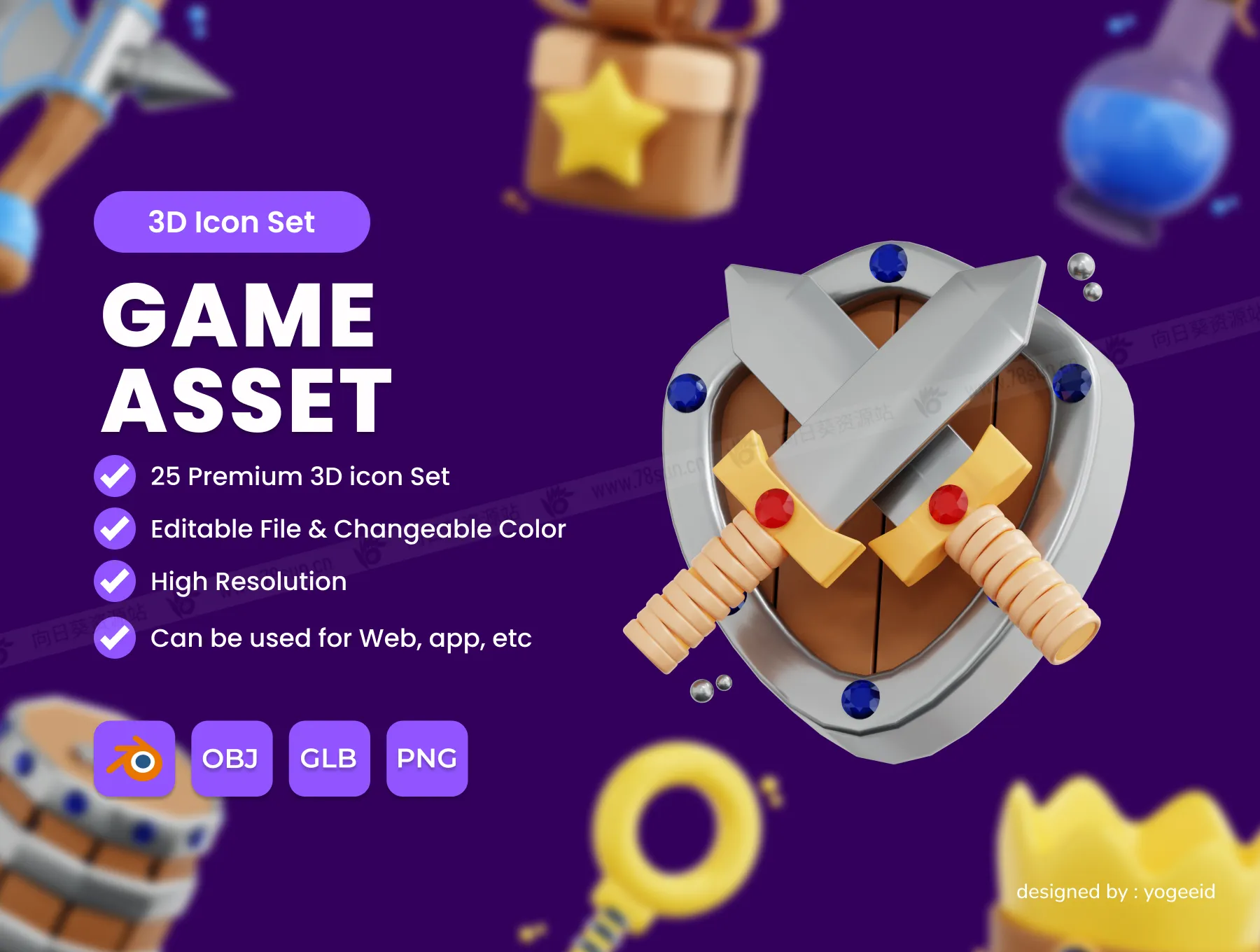 3D立体游戏资产宝剑百宝箱斧头图标blend设计icon素材,此图可用于任何设计项目需求。