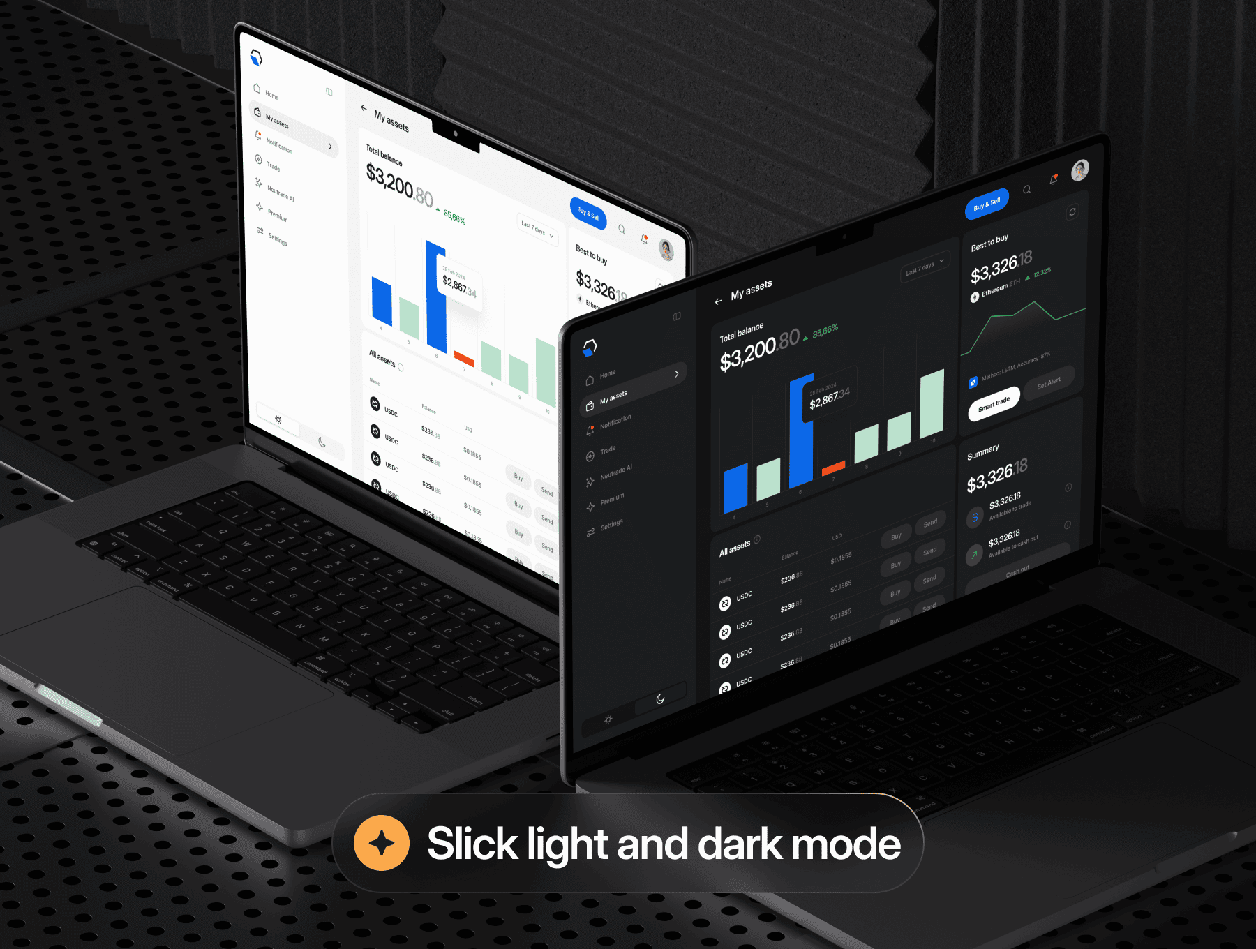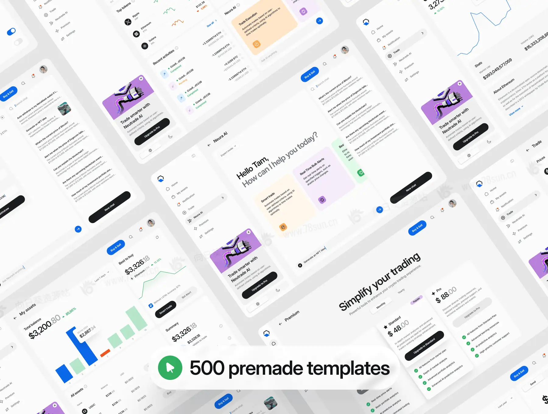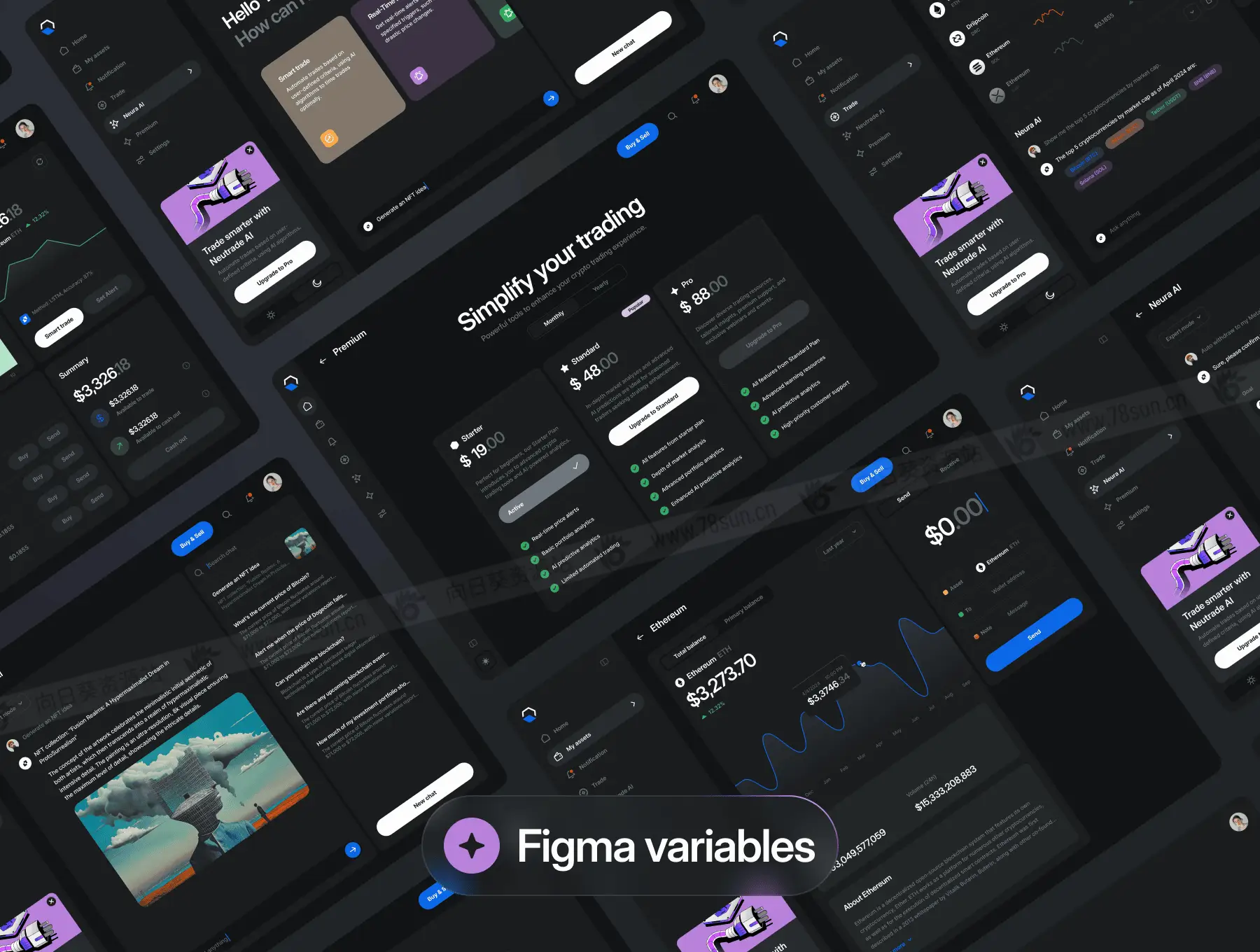 金融加密货币全平台网站移动端web/app ui界面设计fig源文件模板,是一款简洁明了的加密 AI UI 套件,专为您在台式机、平板电脑和移动设备上的所有设计需求而构建。它分浅色和深色模式,具有广泛的美感。包括:仪表板概述、指数、搜索功能、加密资产和详细信息、发送/接收加密、兑现、通知、交易、详细的代币信息、AI 聊天、买卖加密模式、加密转换、、定价选项、设置、帐户登录/上台和最新消息……等,figma格式,共500个界面