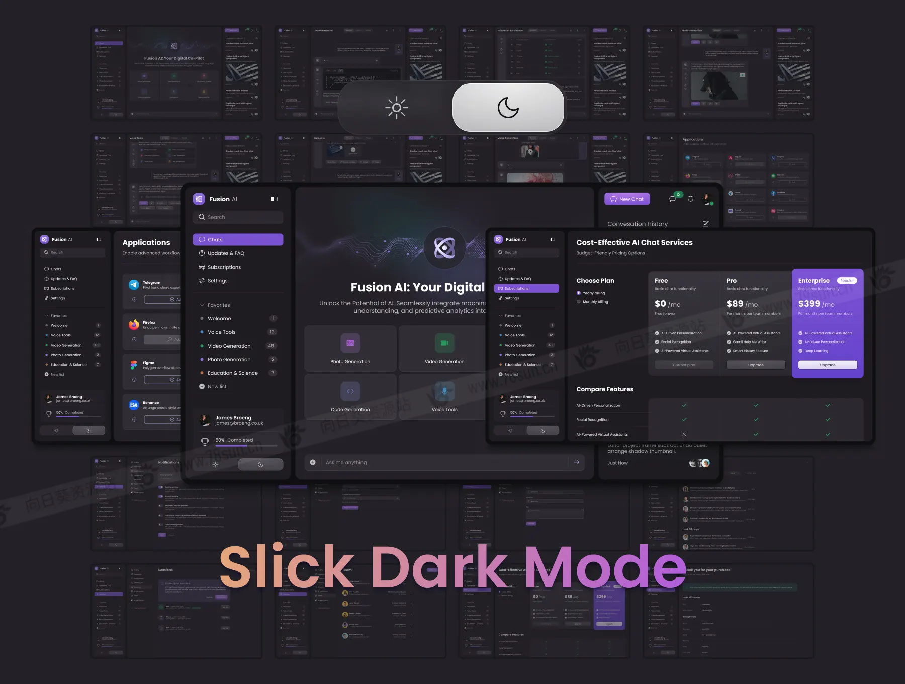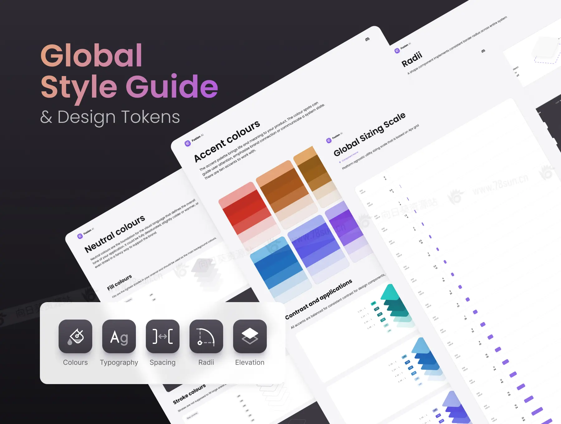1. 清新现代的视觉风格,具有光泽的按钮和渗色阴影